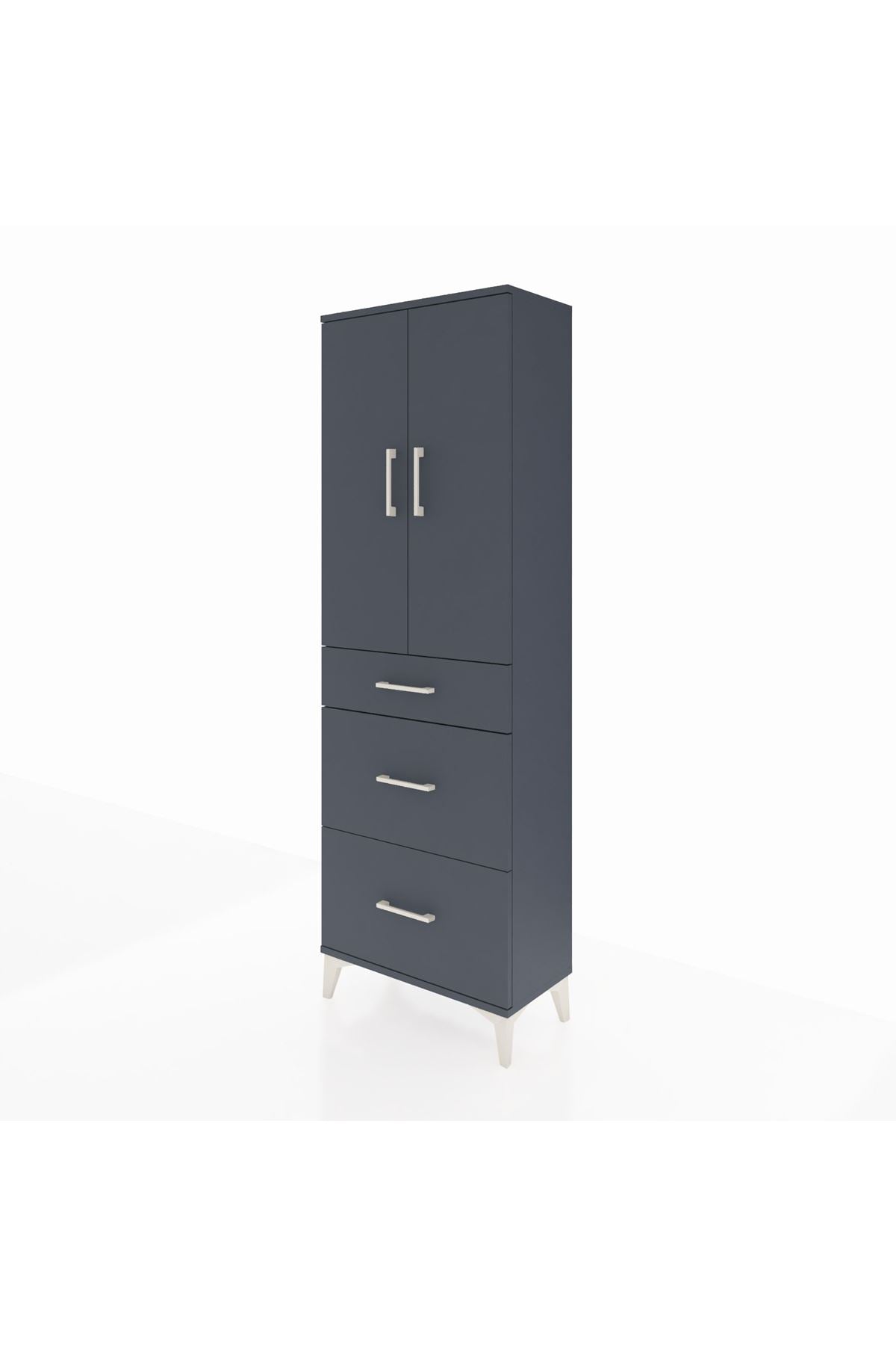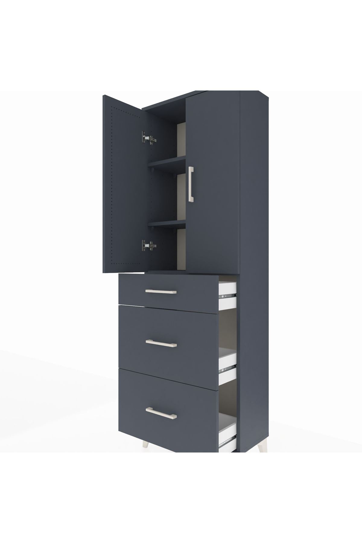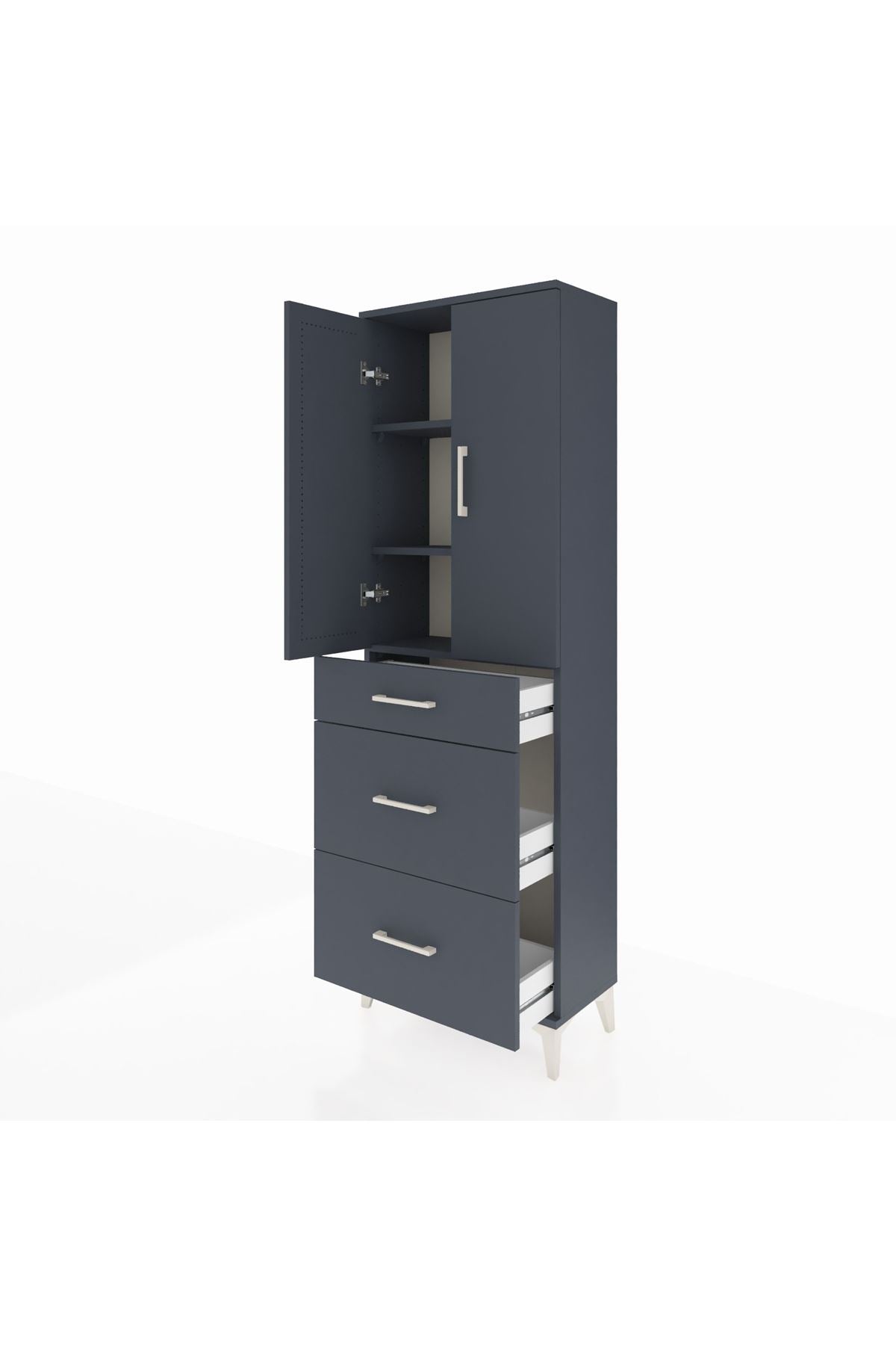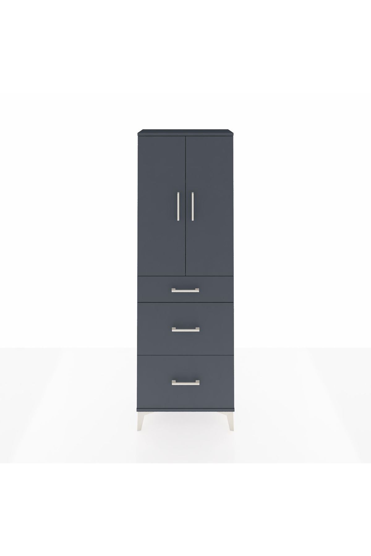 Arges Dolap 3 Raflı 3 Çekmeceli 2 Kapaklı 60x30x182 Antrasit-Antrasit