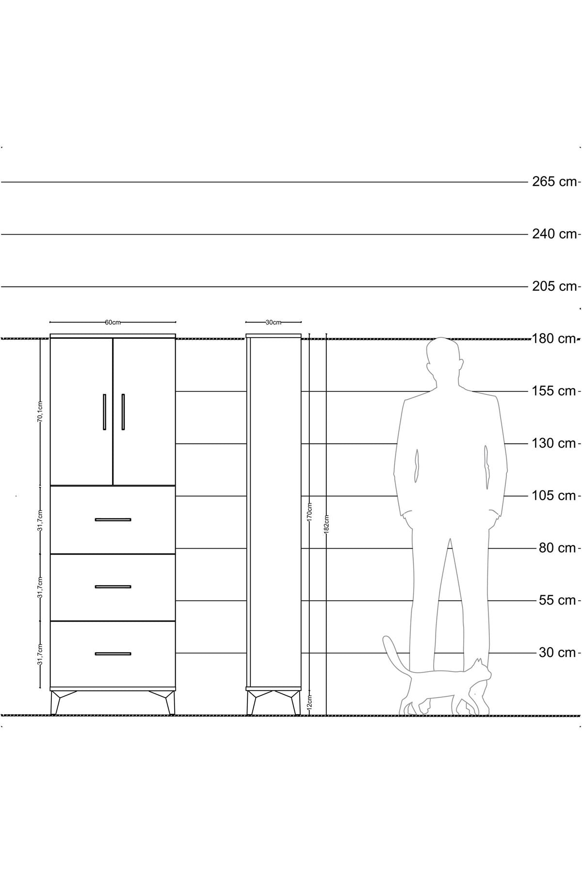 Arges Dolap 3 Raflı 3 Çekmeceli 2 Kapaklı 60x30x182 Aytaşı-Aytaşı