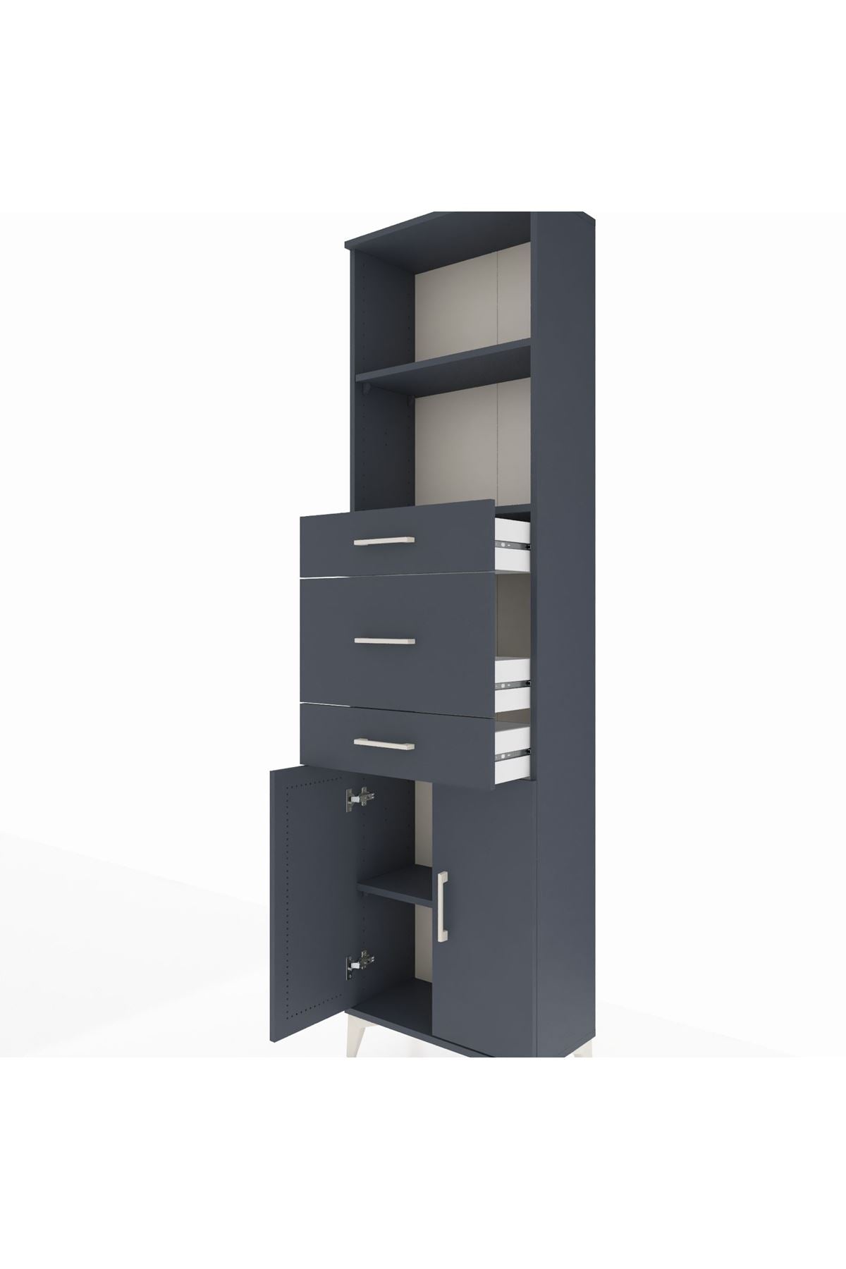 Arges Dolap 3 Raflı 3 Çekmeceli 2 Kapaklı 60x30x221 Antrasit-Antrasit