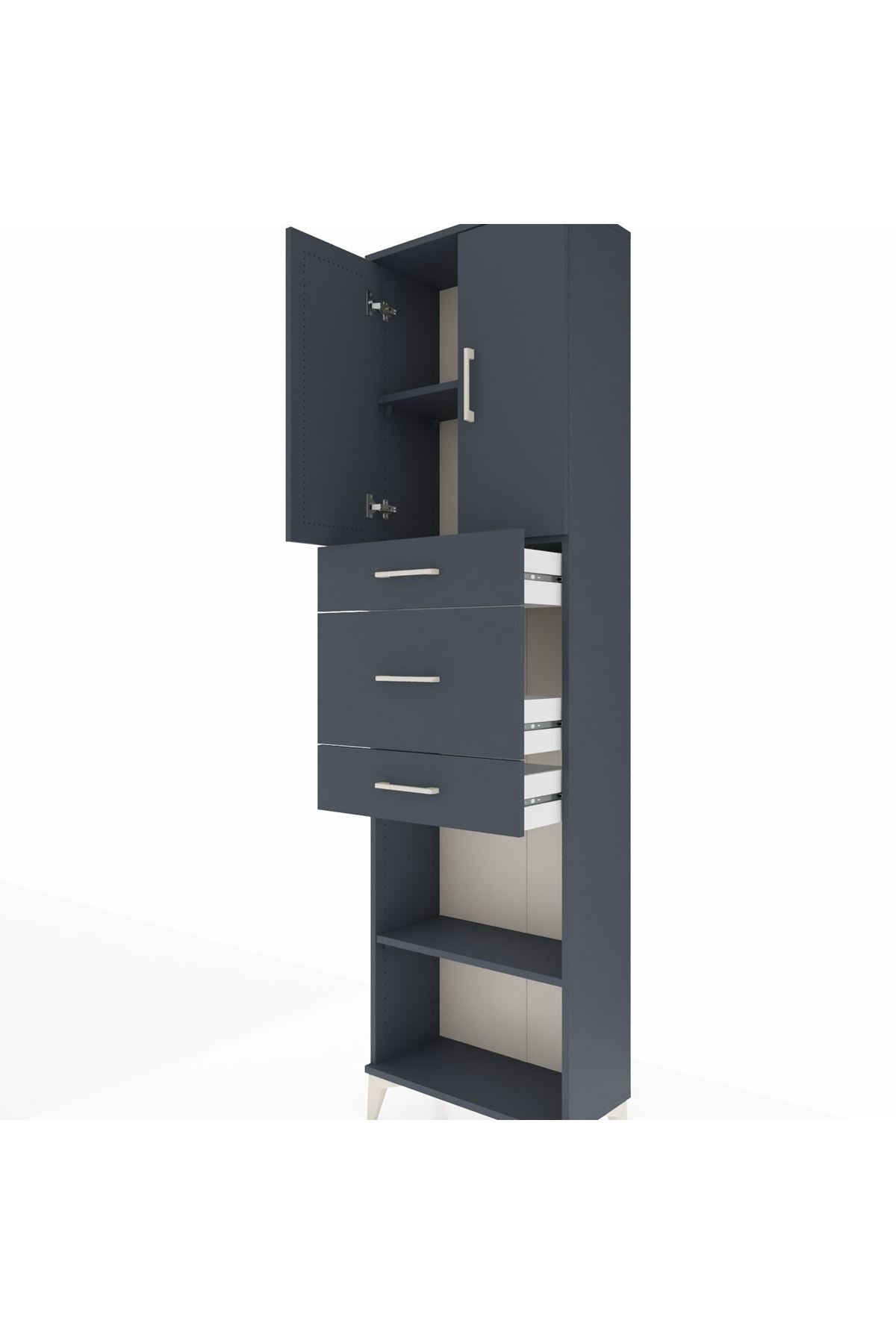 Arges Dolap 3 Raflı 3 Çekmeceli 2 Kapaklı 60x30x221 Antrasit-Antrasit