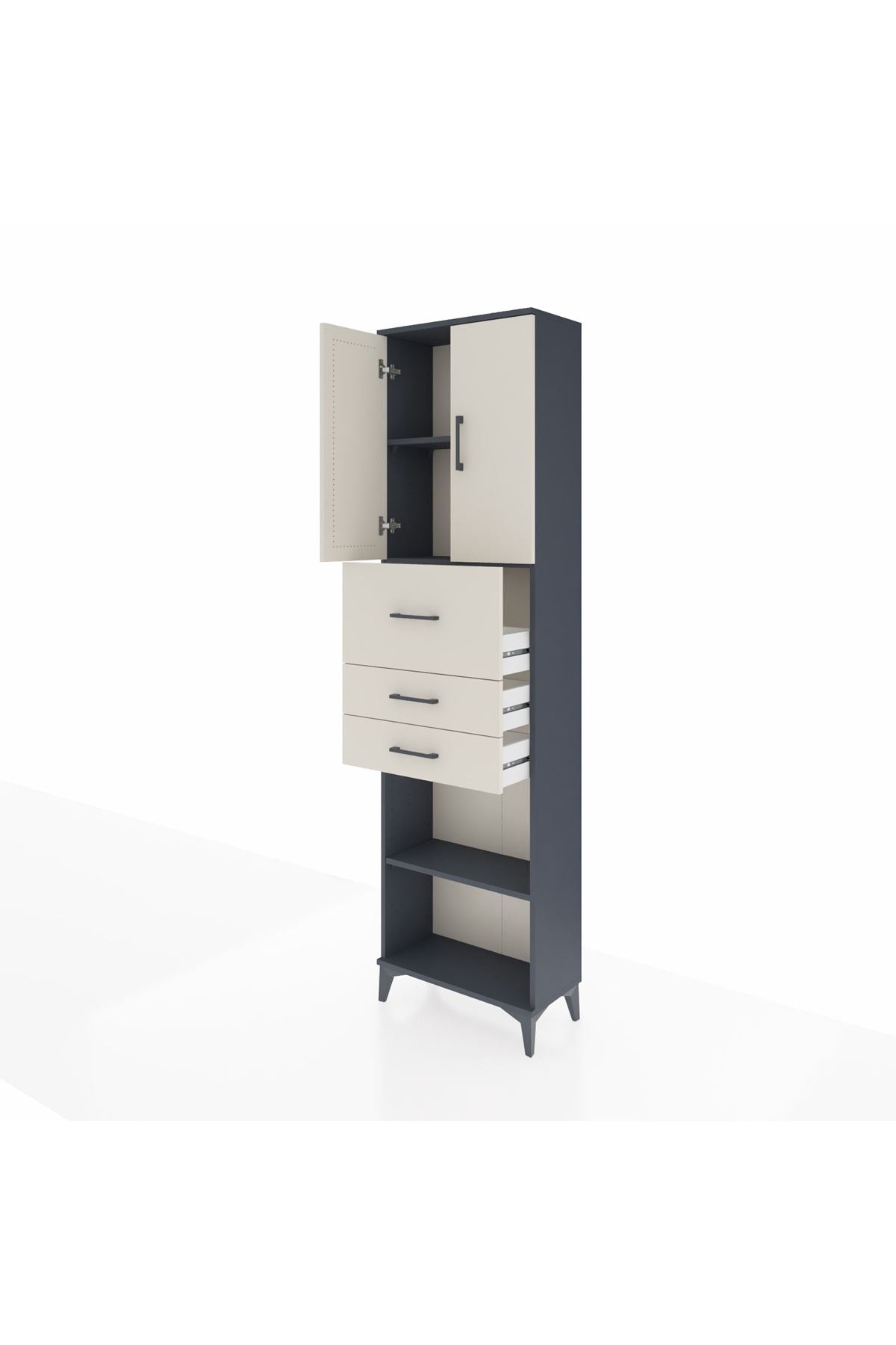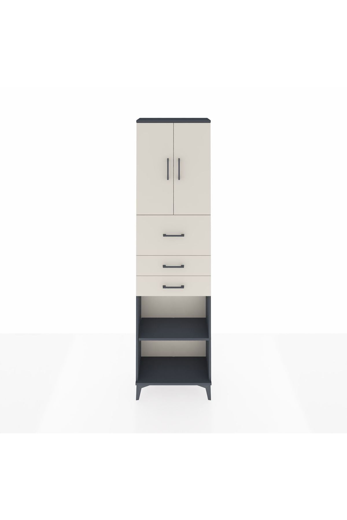 Arges Dolap 3 Raflı 3 Çekmeceli 2 Kapaklı 60x30x221 Antrasit-Aytaşı