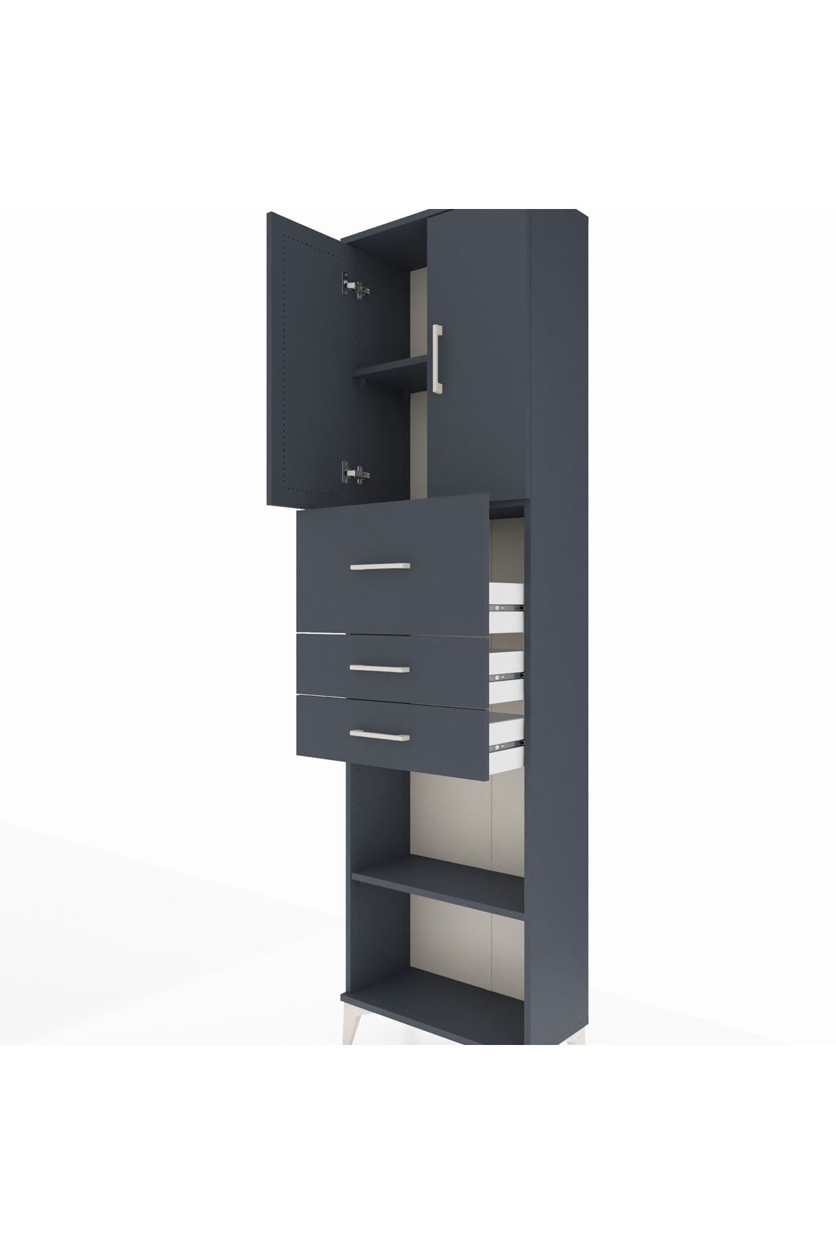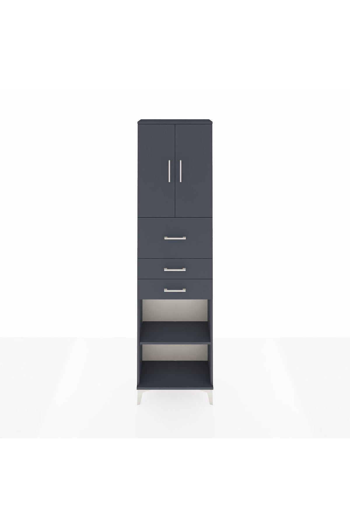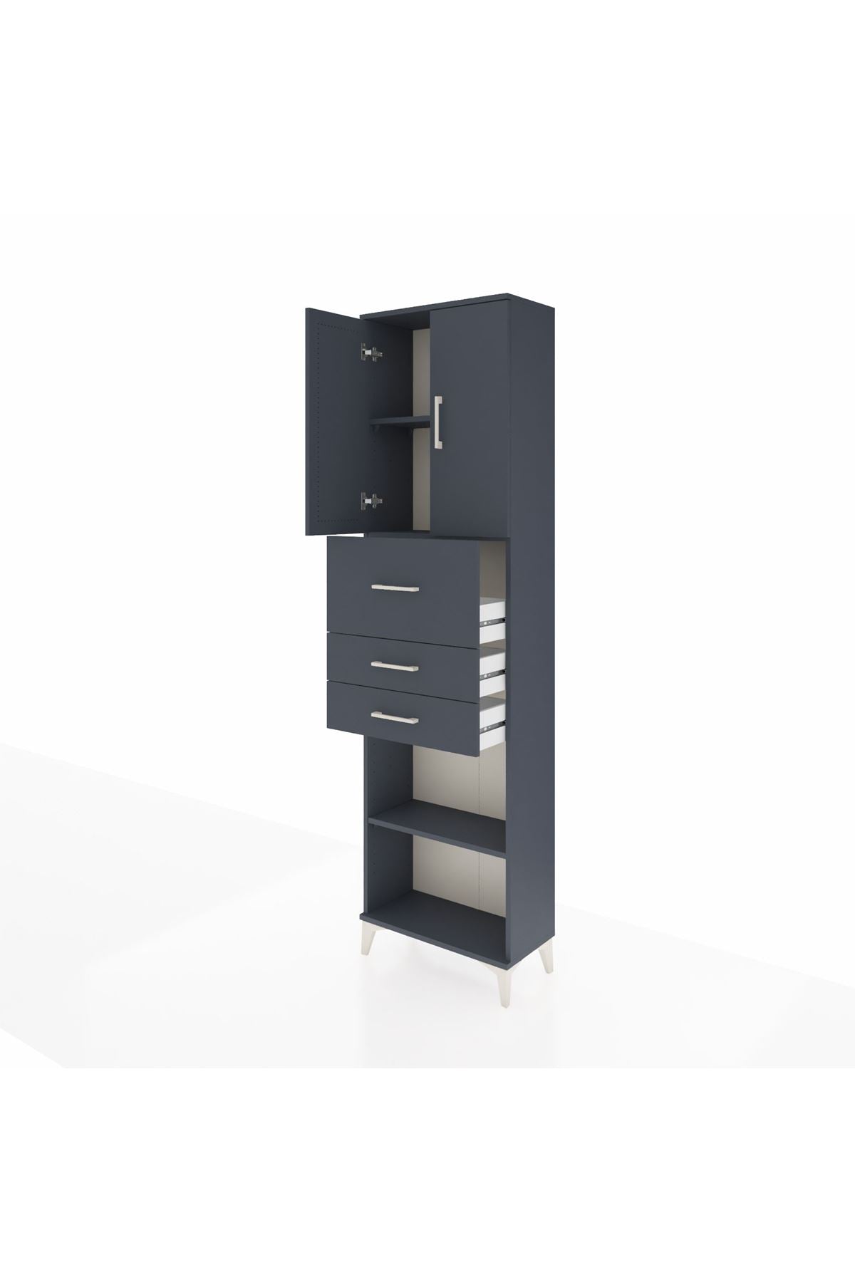 Arges Dolap 3 Raflı 3 Çekmeceli 2 Kapaklı 60x30x221 Antrasit-Antrasit