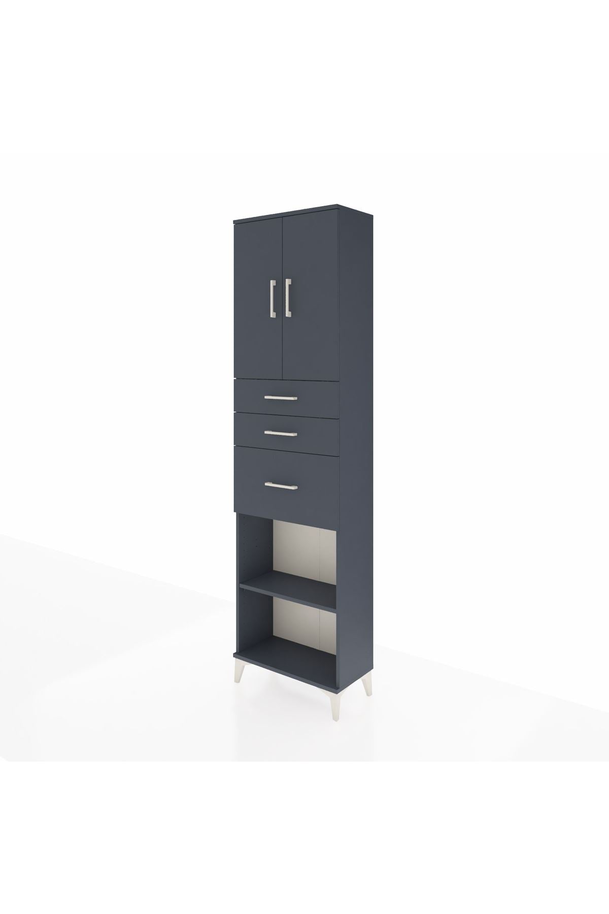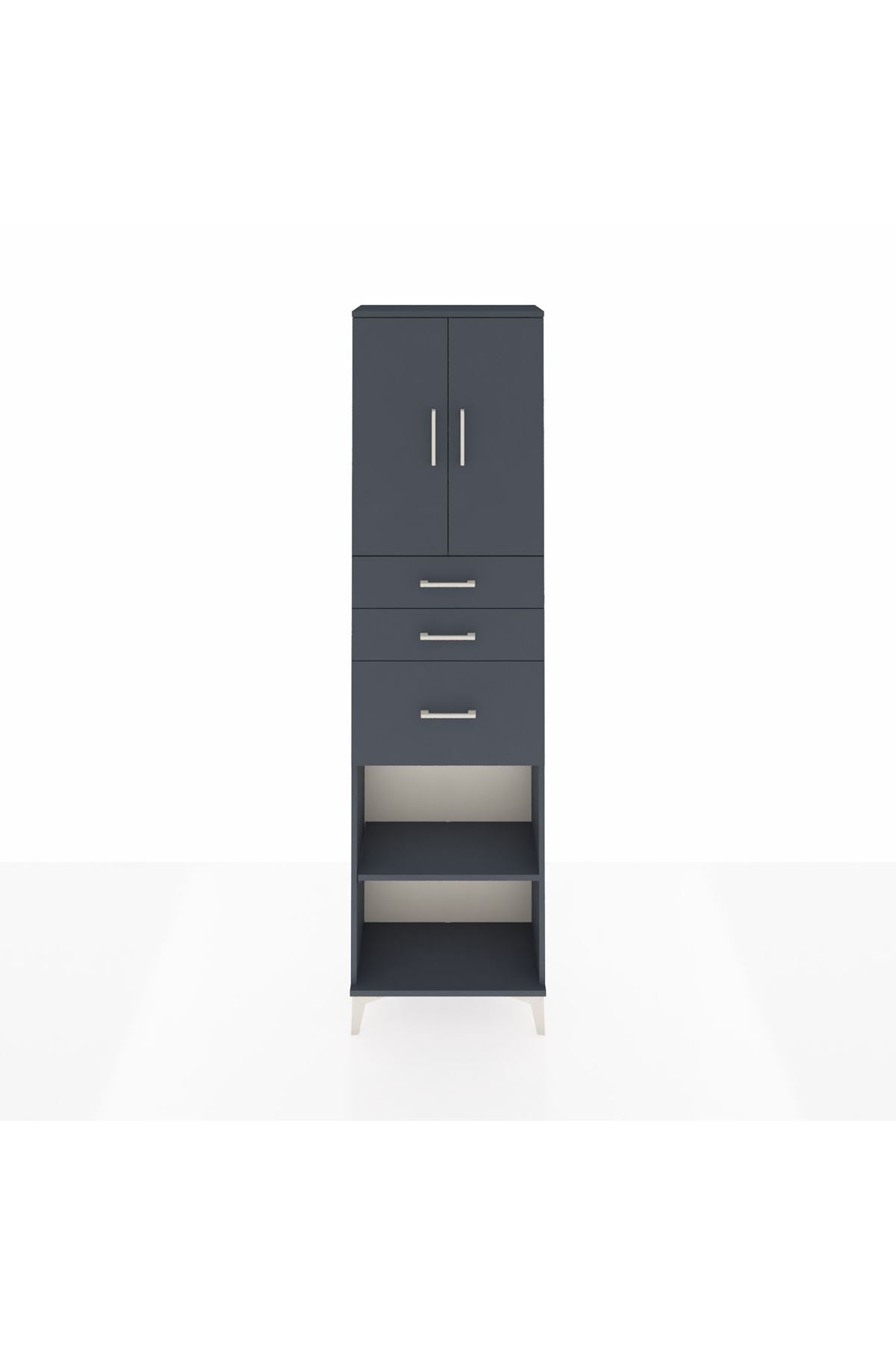 Arges Dolap 3 Raflı 3 Çekmeceli 2 Kapaklı 60x30x221 Antrasit-Antrasit