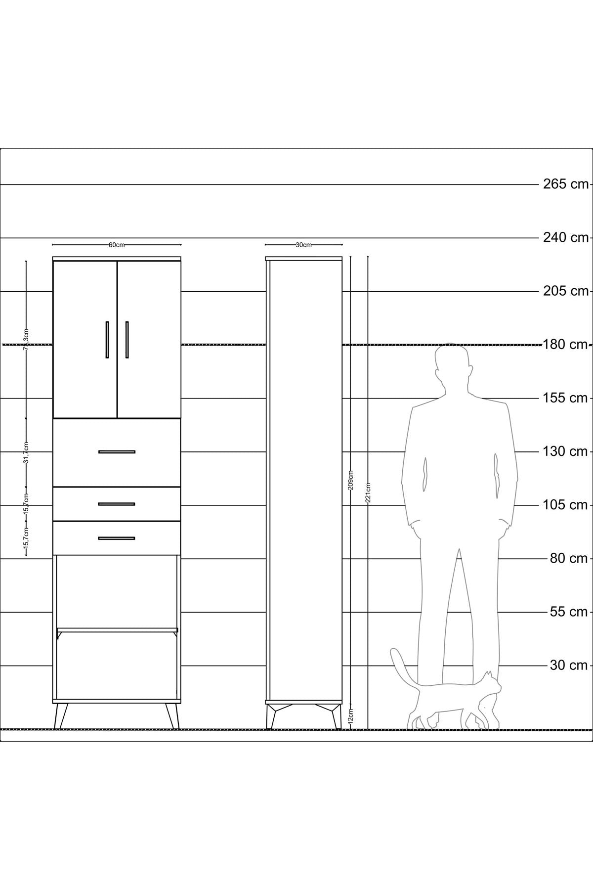 Arges Dolap 3 Raflı 3 Çekmeceli 2 Kapaklı 60x30x221 Aytaşı-Çam