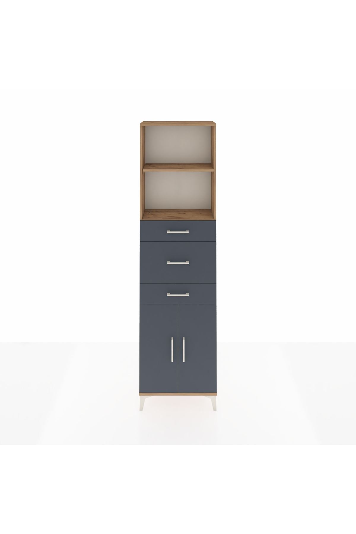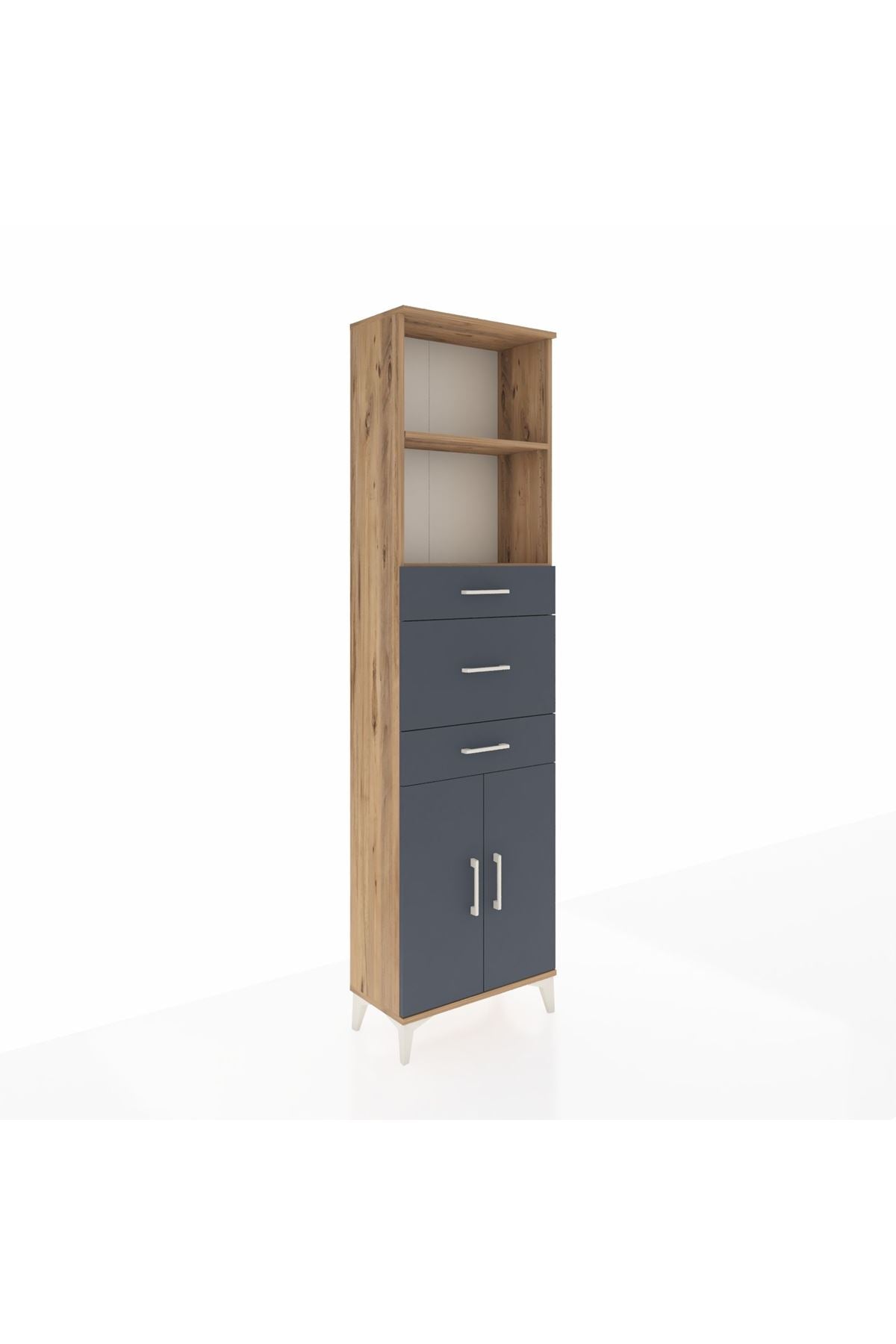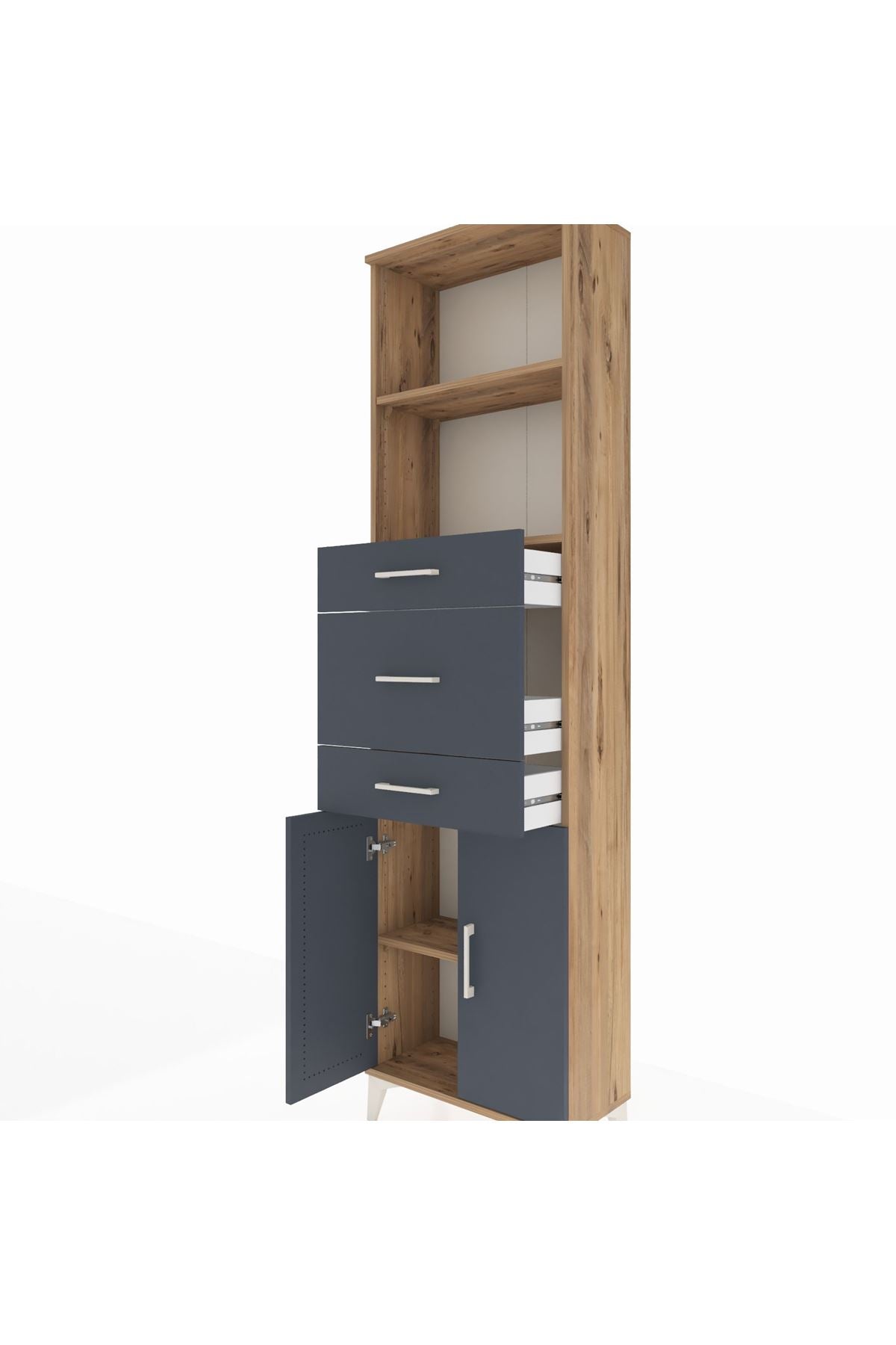 Arges Dolap 3 Raflı 3 Çekmeceli 2 Kapaklı 60x30x221 Çam-Antrasit