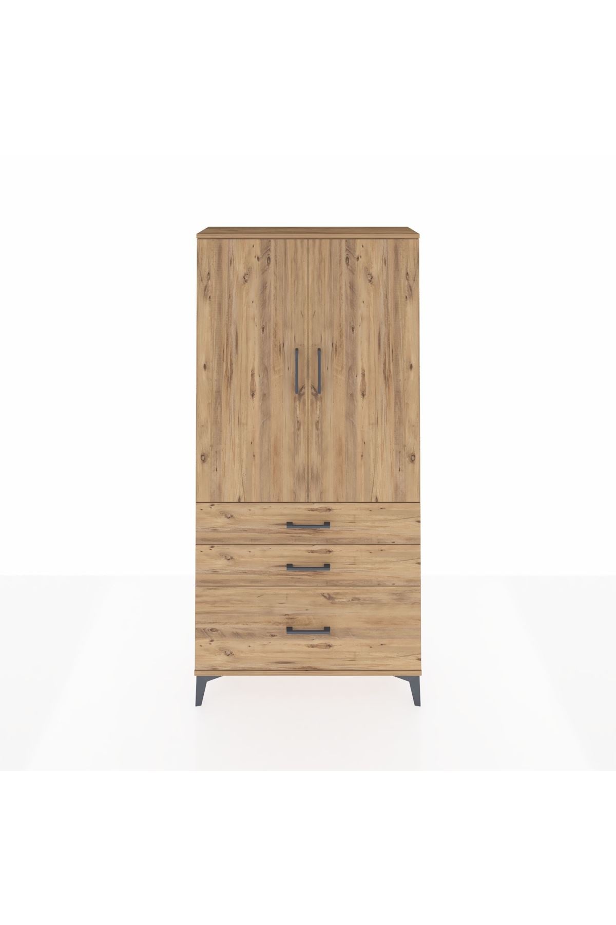 Arges Dolap 3 Raflı 3 Çekmeceli 2 Kapaklı 88x30x182 Çam-Çam