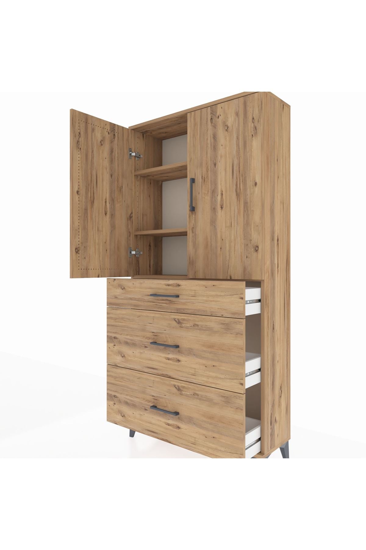 Arges Dolap 3 Raflı 3 Çekmeceli 2 Kapaklı 88x30x182 Çam-Çam