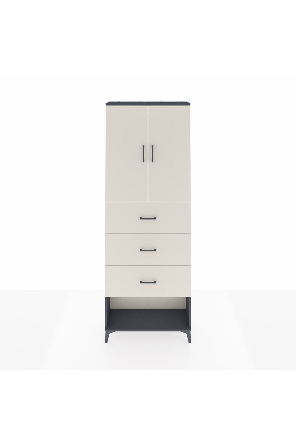 Arges Dolap 3 Raflı 3 Çekmeceli 2 Kapaklı 88x30x243 Antrasit-Aytaşı