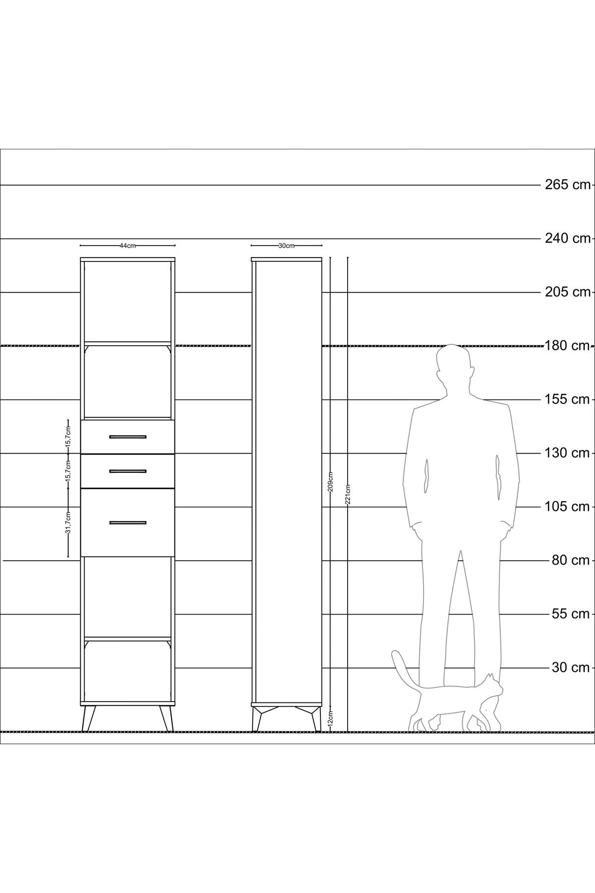 Arges Dolap 3 Raflı 3 Çekmeceli 44x30x221 Çam-Aytaşı