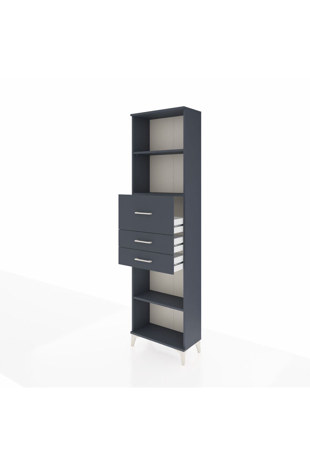 Arges Dolap 3 Raflı 3 Çekmeceli 60x30x221 Antrasit-Antrasit