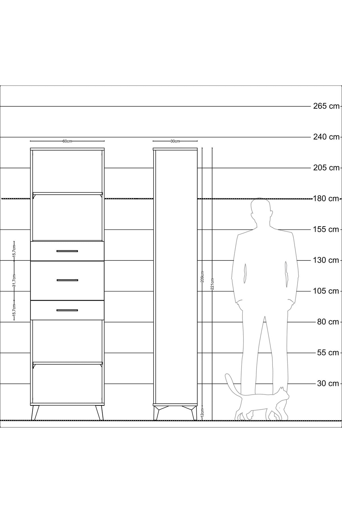 Arges Dolap 3 Raflı 3 Çekmeceli 60x30x221 Aytaşı-Çam