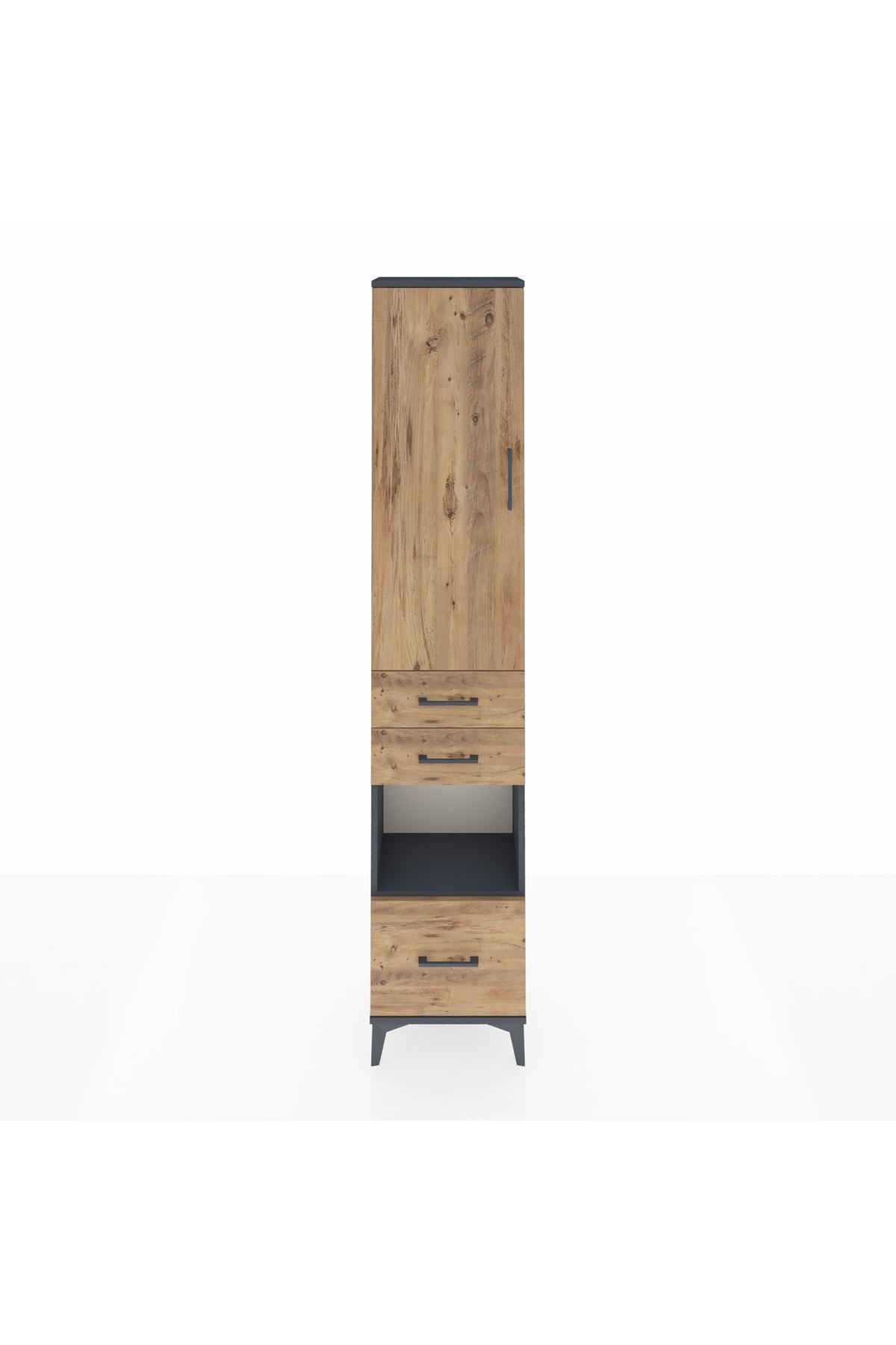 Arges Dolap 3 Raflı 3 Çekmeceli Tek Askılı 44x30x221 Antrasit-Çam