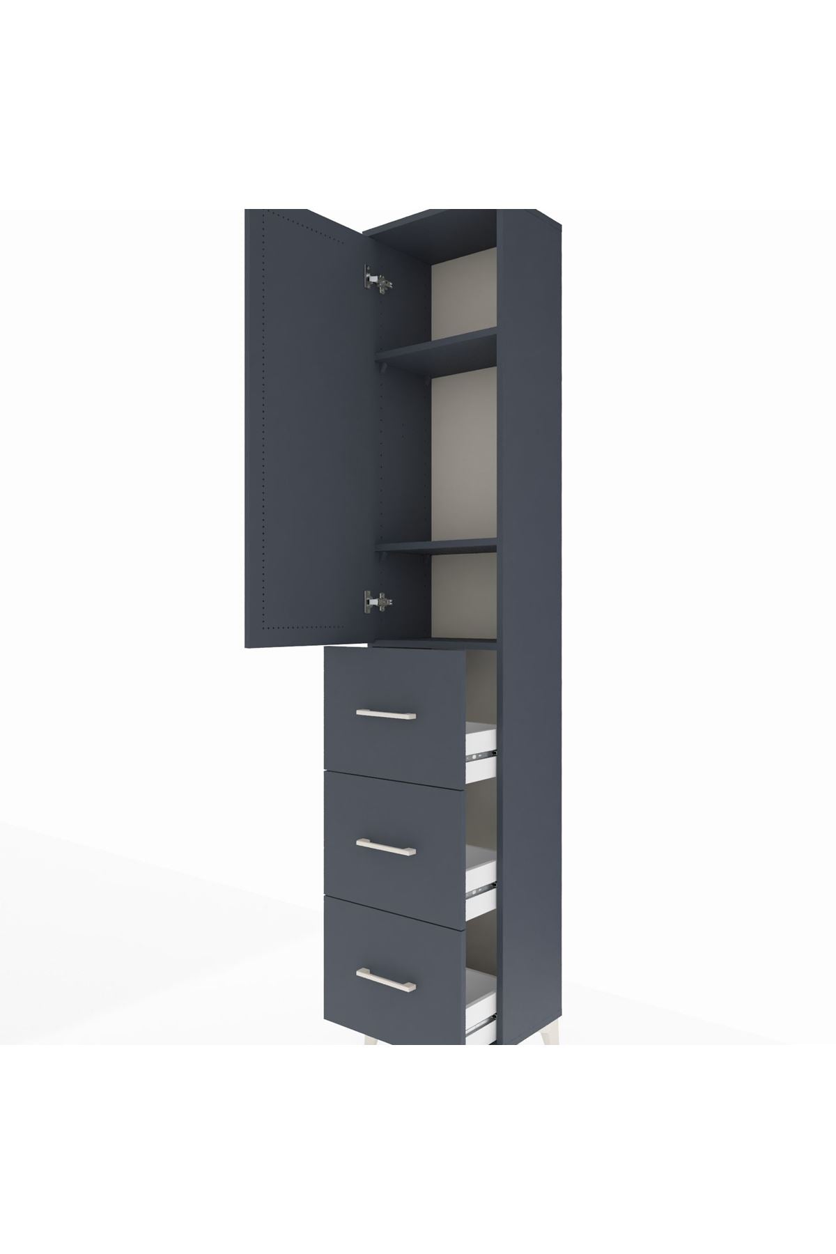 Arges Dolap 3 Raflı 3 Çekmeceli Tek Kapaklı 44x30x221 Antrasit-Antrasit