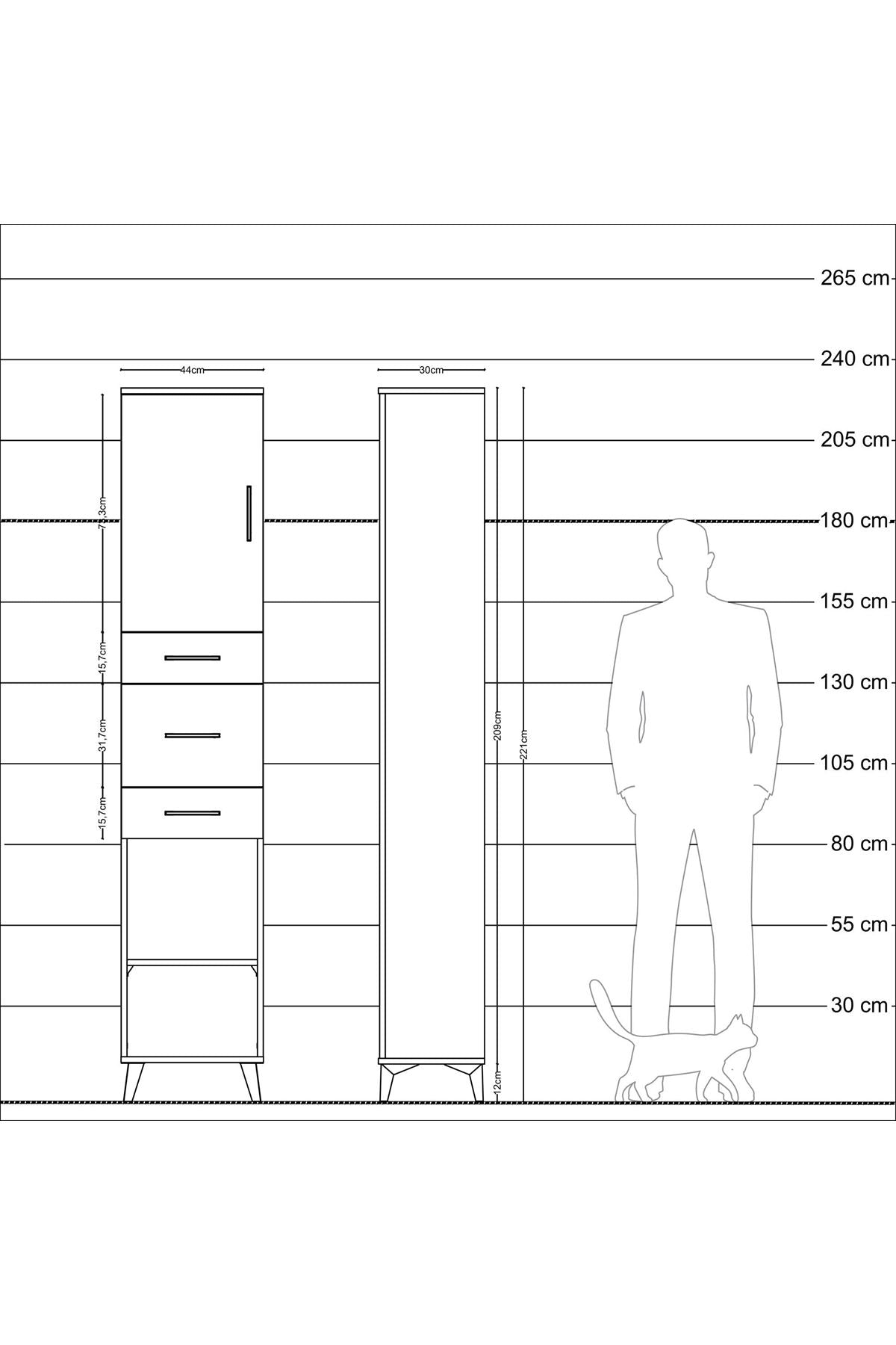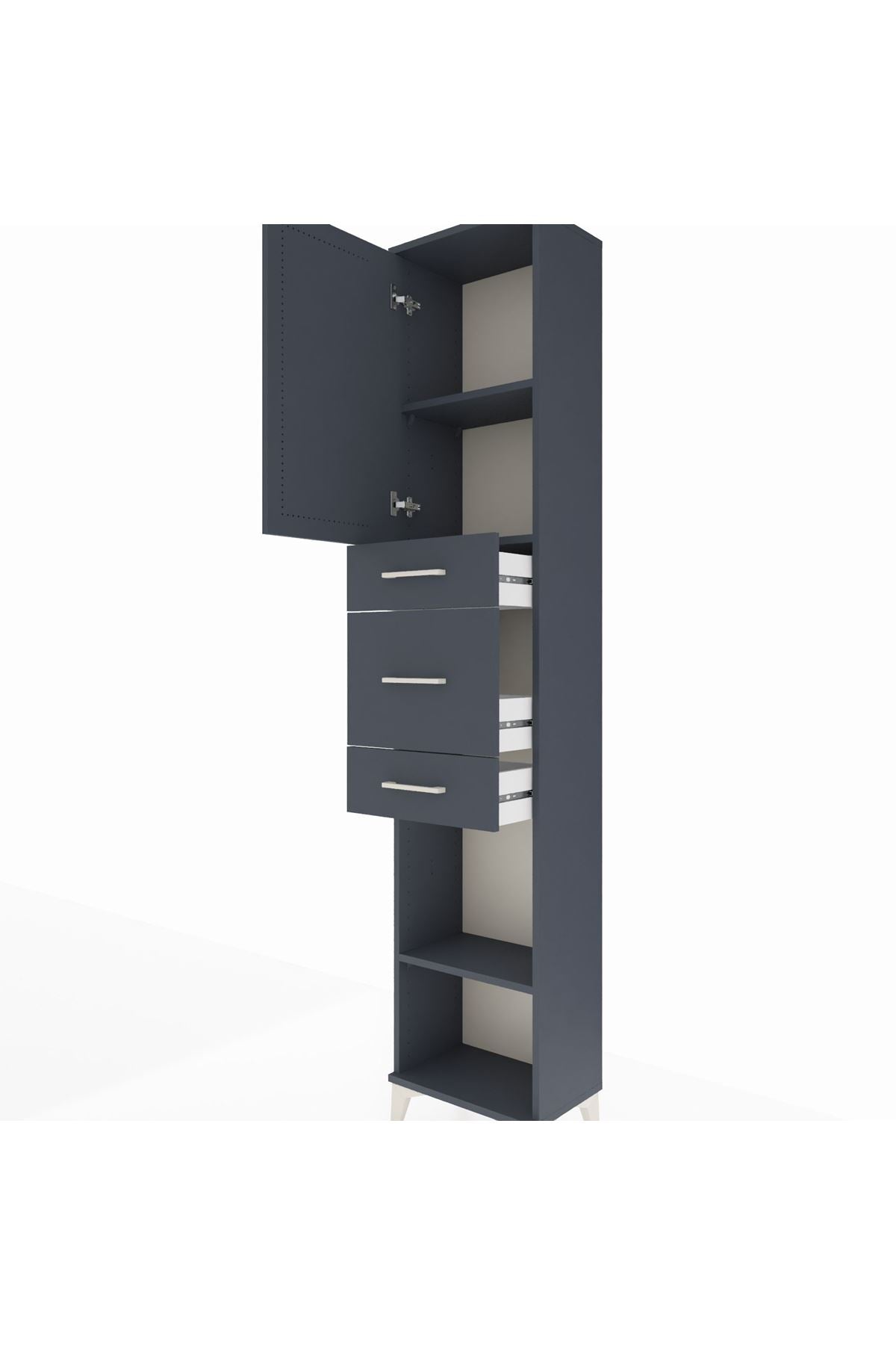 Arges Dolap 3 Raflı 3 Çekmeceli Tek Kapaklı 44x30x221 Antrasit-Antrasit
