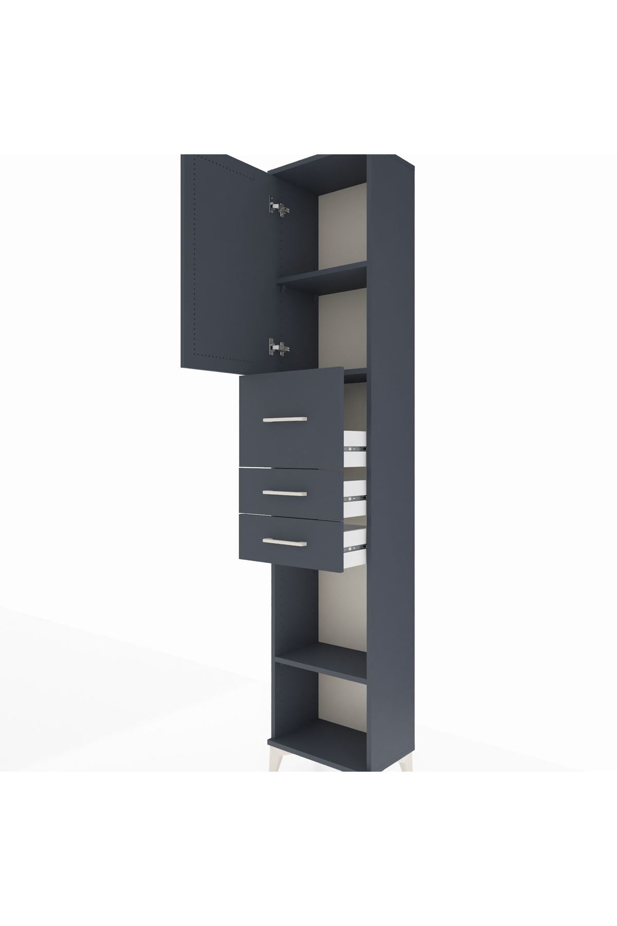 Arges Dolap 3 Raflı 3 Çekmeceli Tek Kapaklı 44x30x221 Antrasit-Antrasit