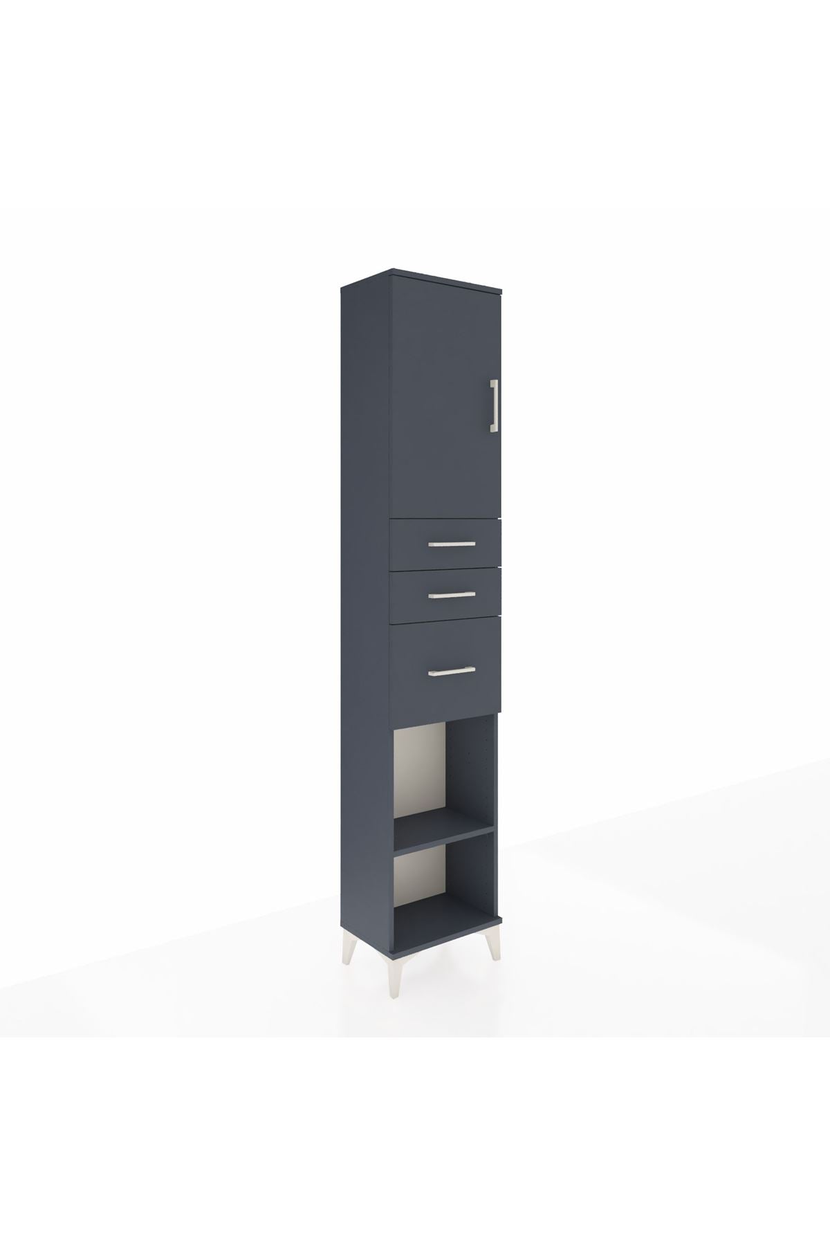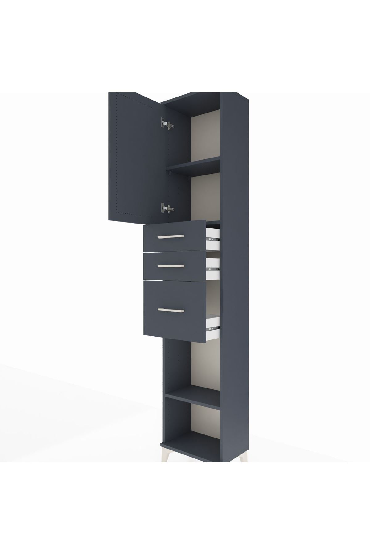 Arges Dolap 3 Raflı 3 Çekmeceli Tek Kapaklı 44x30x221 Antrasit-Antrasit