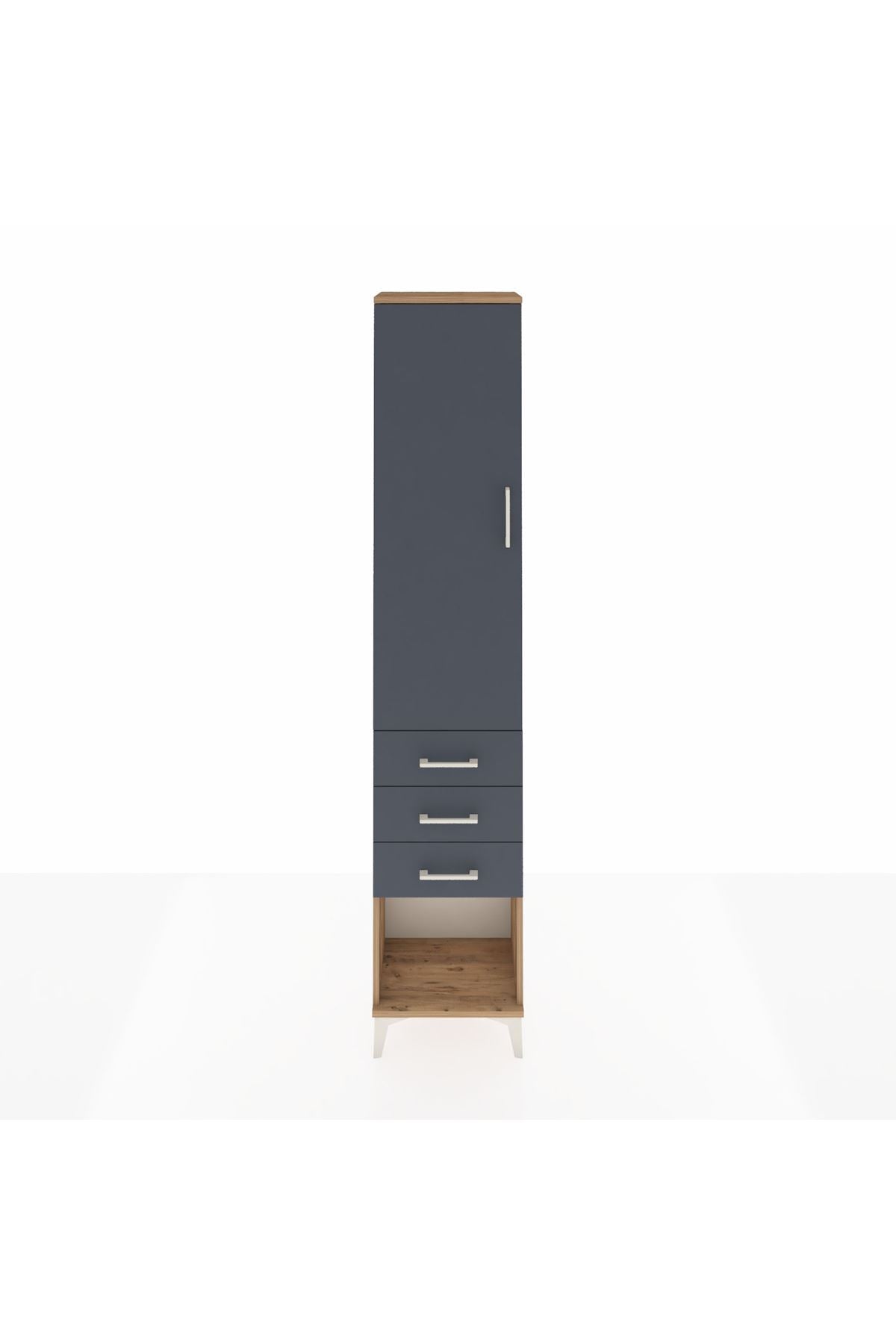 Arges Dolap 3 Raflı 3 Çekmeceli Tek Kapaklı 44x30x221 Çam-Antrasit