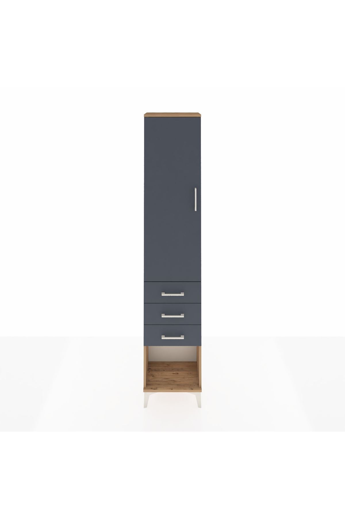 Arges Dolap 3 Raflı 3 Çekmeceli Tek Kapaklı 44x30x221 Çam-Antrasit
