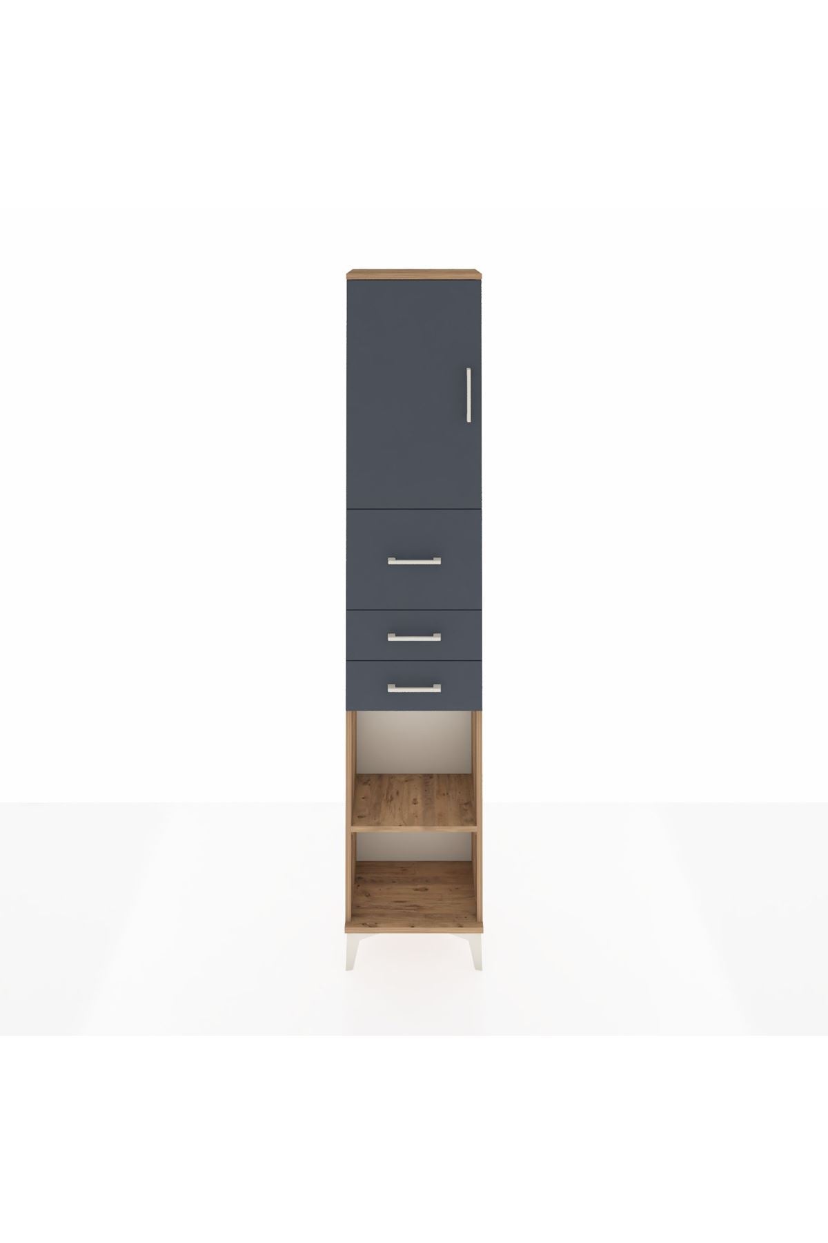 Arges Dolap 3 Raflı 3 Çekmeceli Tek Kapaklı 44x30x221 Çam-Antrasit