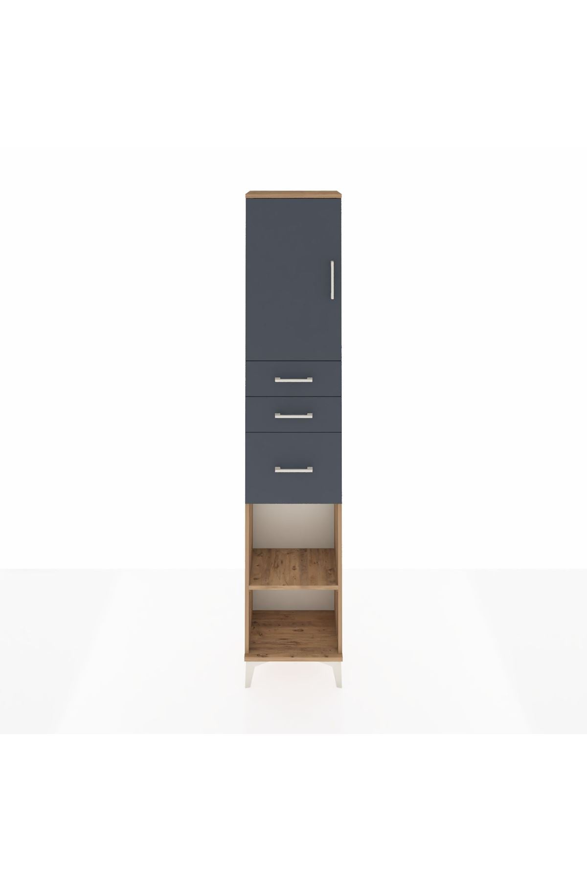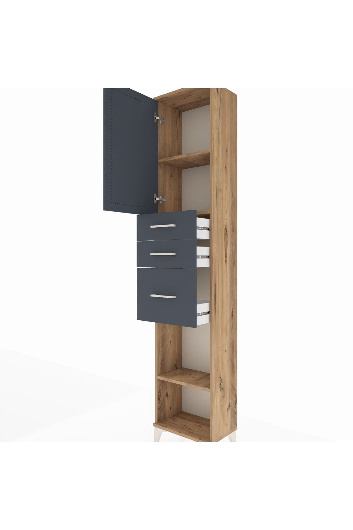 Arges Dolap 3 Raflı 3 Çekmeceli Tek Kapaklı 44x30x221 Çam-Antrasit