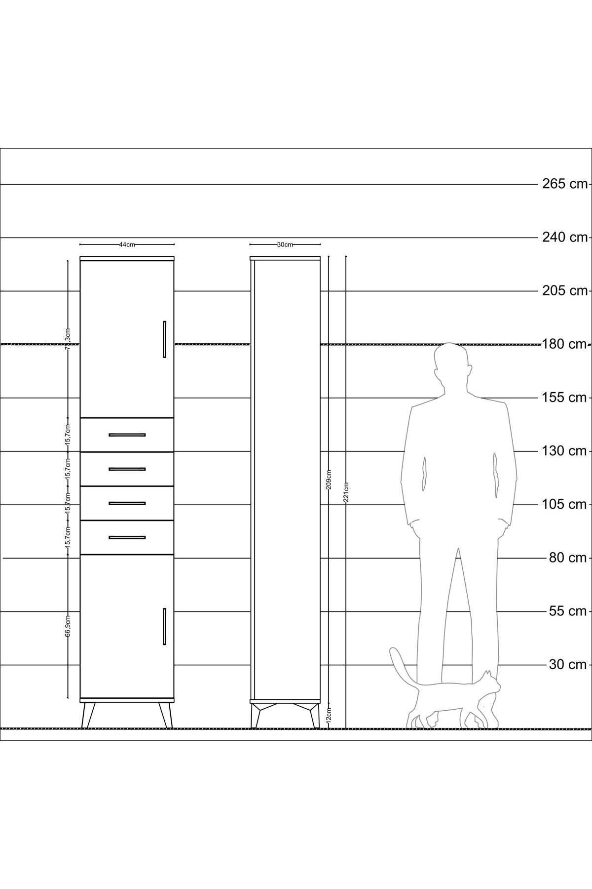 Arges Dolap 3 Raflı 4 Çekmeceli 2 Kapaklı 44x30x221 Antrasit-Aytaşı