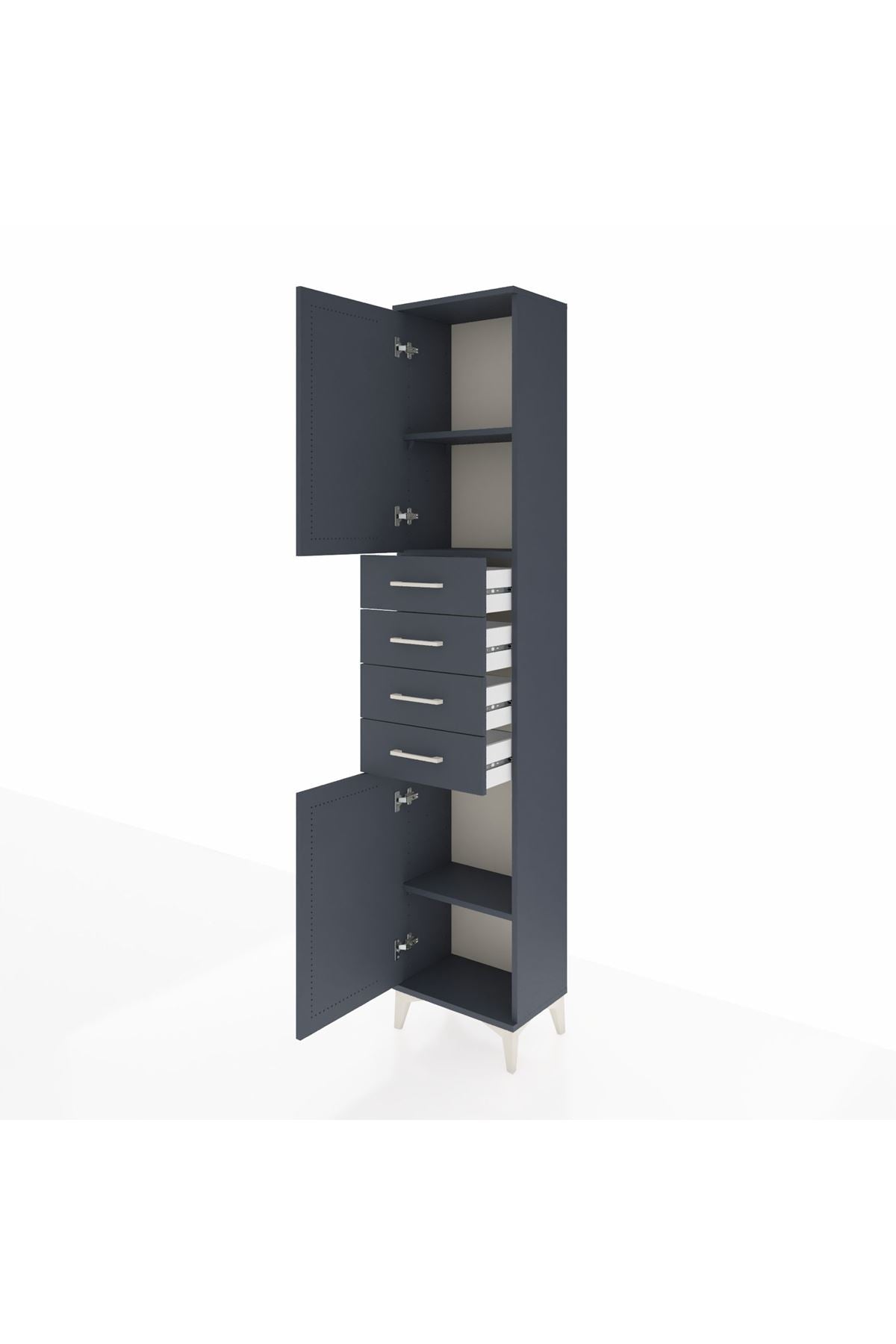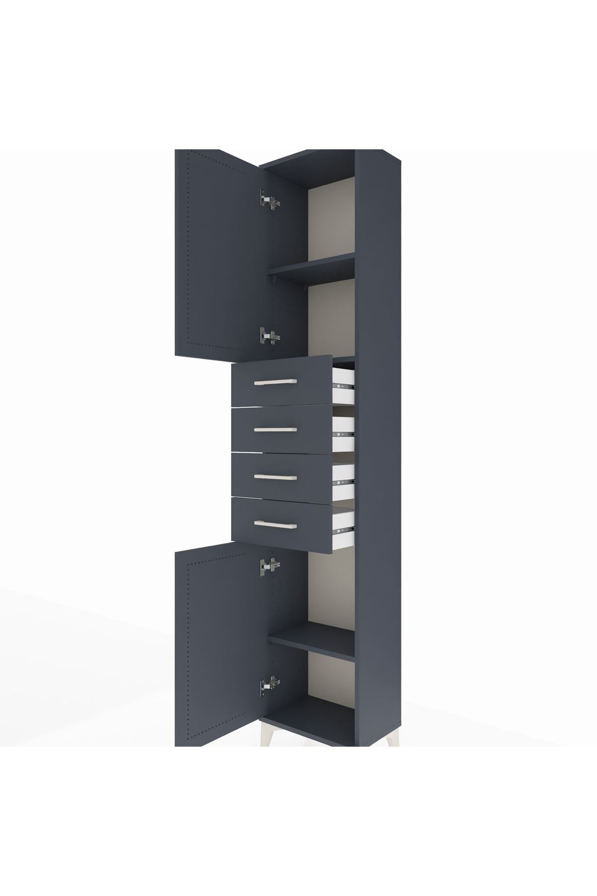 Arges Dolap 3 Raflı 4 Çekmeceli 2 Kapaklı 44x30x221 Antrasit-Antrasit
