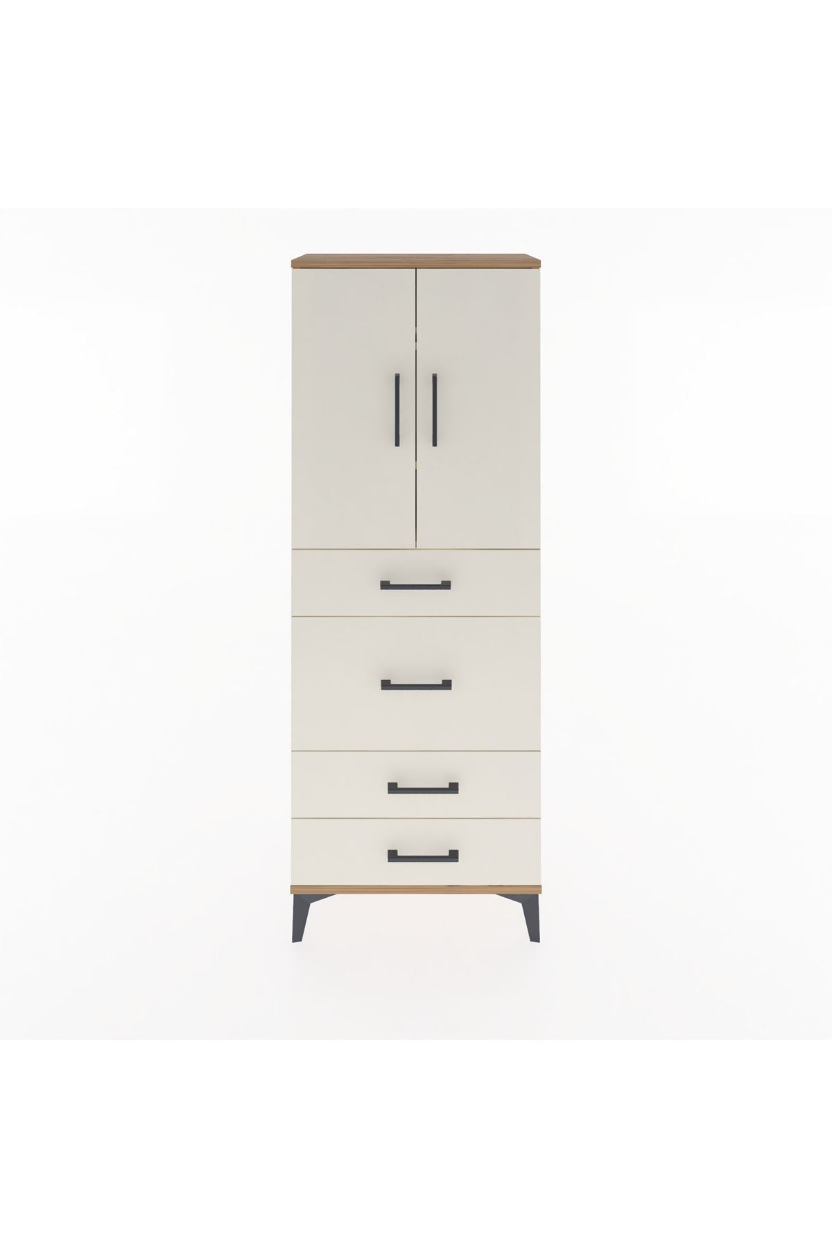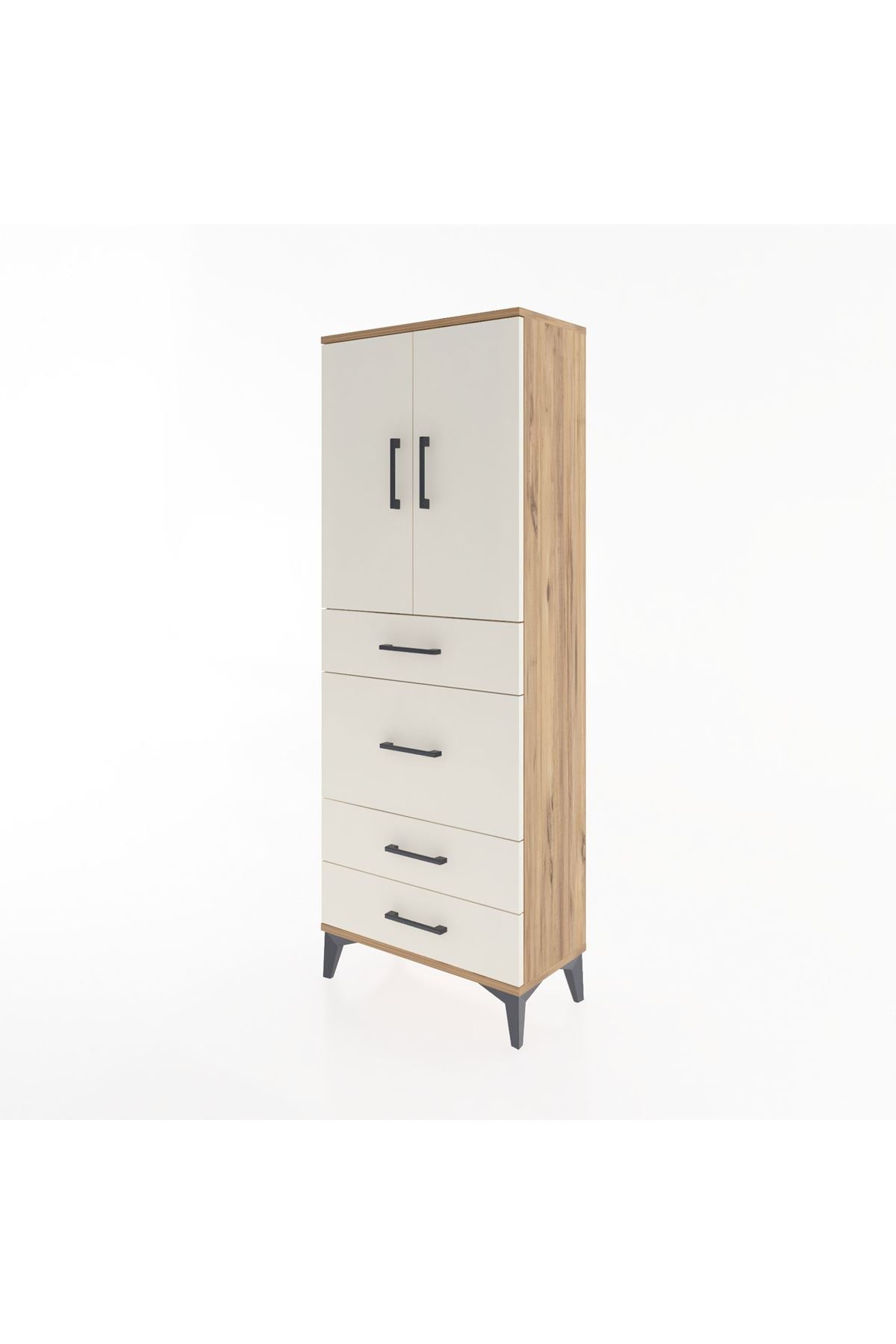 Arges Dolap 3 Raflı 4 Çekmeceli 2 Kapaklı 60x30x163 Çam-Aytaşı