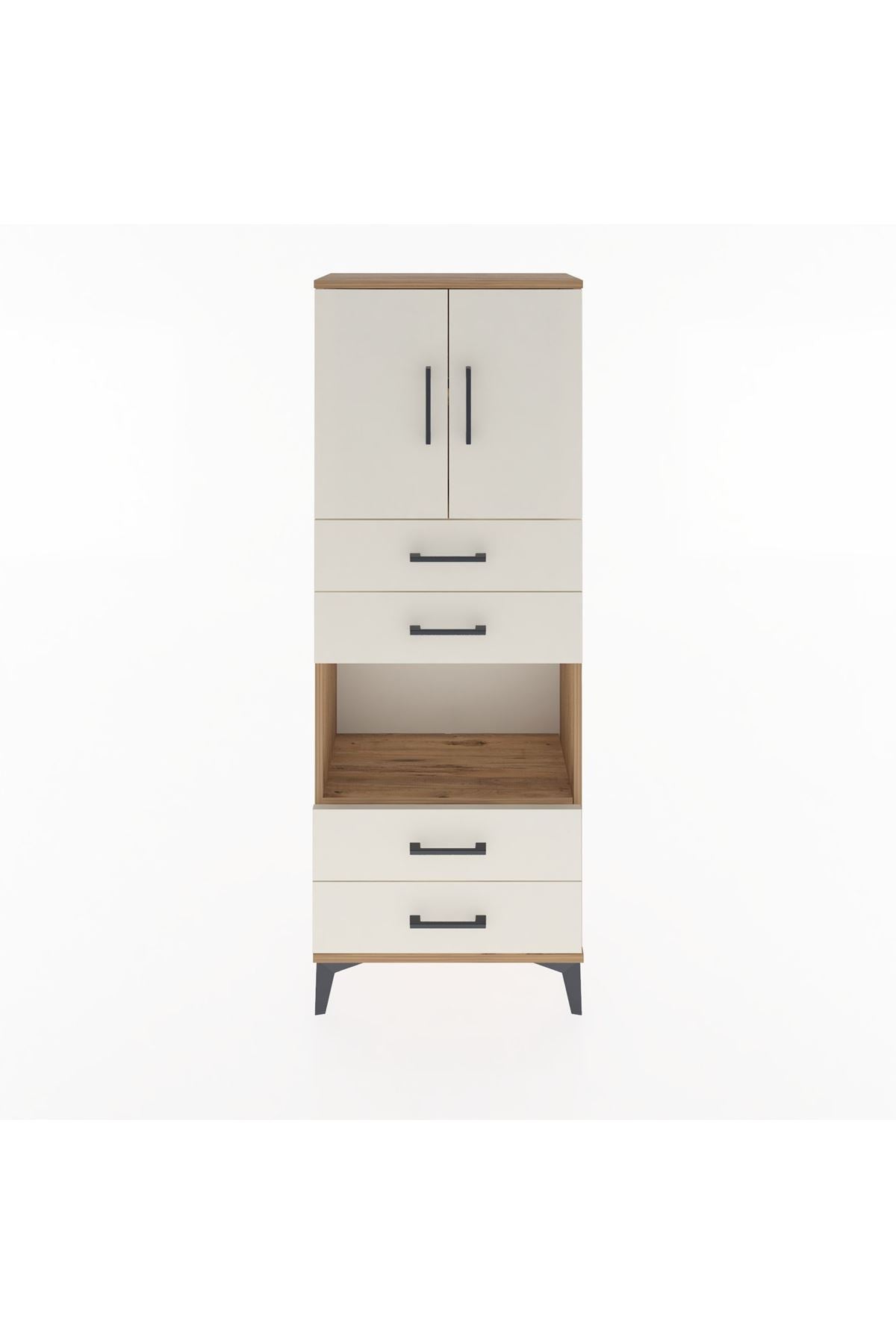 Arges Dolap 3 Raflı 4 Çekmeceli 2 Kapaklı 60x30x163 Çam-Aytaşı