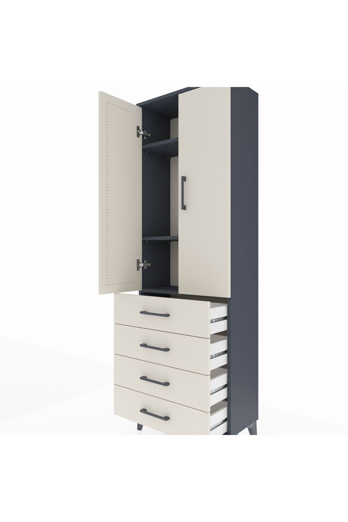 Arges Dolap 3 Raflı 4 Çekmeceli 2 Kapaklı 60x30x182 Antrasit-Aytaşı