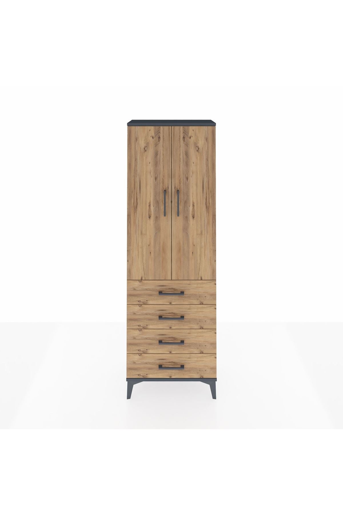 Arges Dolap 3 Raflı 4 Çekmeceli 2 Kapaklı 60x30x182 Antrasit-Çam