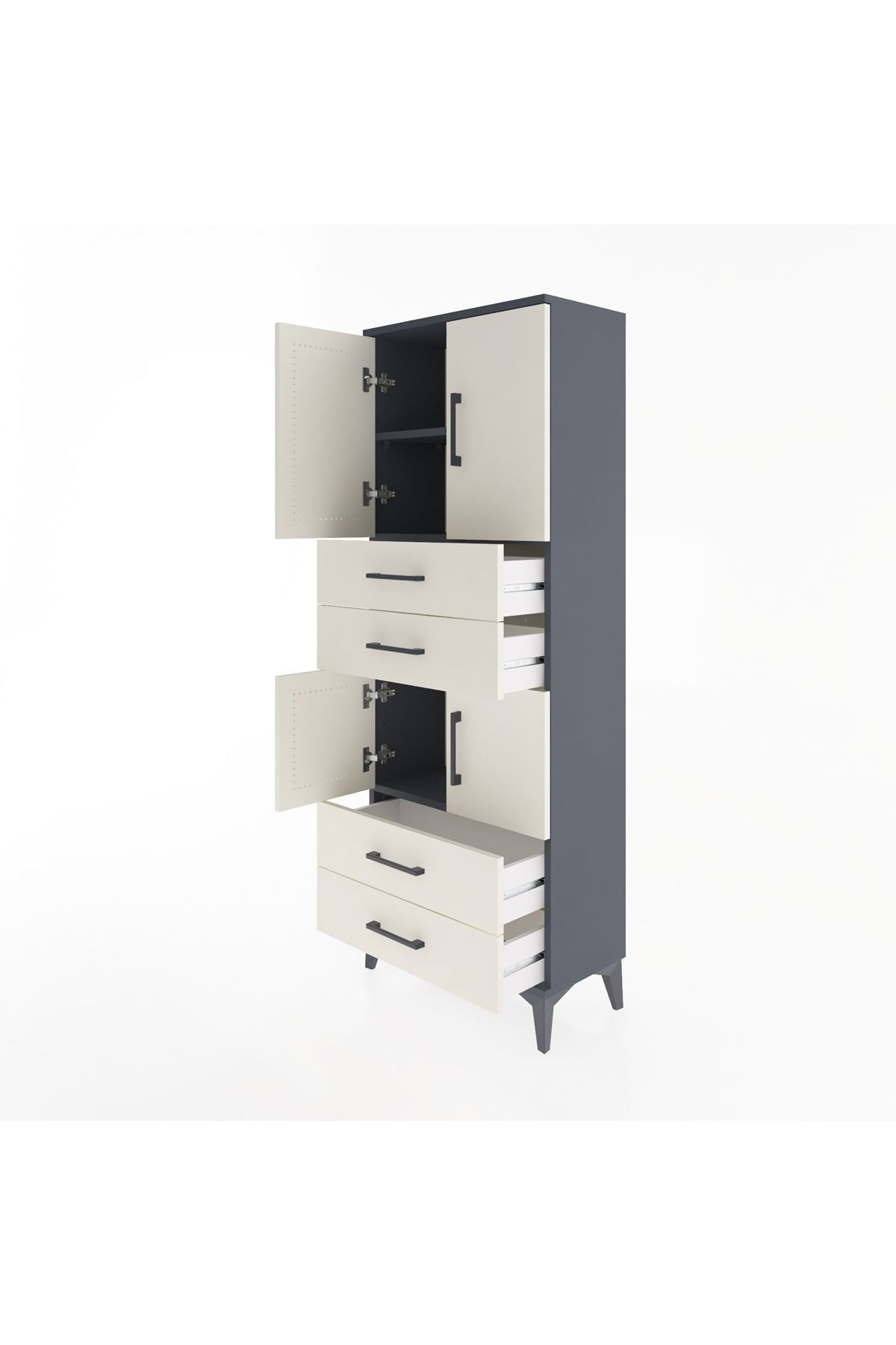 Arges Dolap 3 Raflı 4 Çekmeceli 4 Kapaklı 60x30x163 Antrasit-Aytaşı