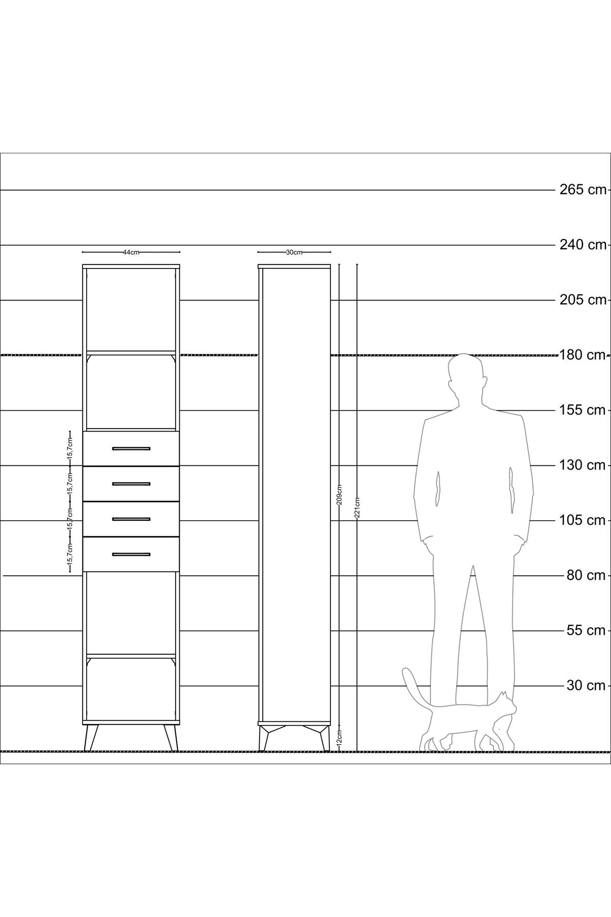 Arges Dolap 3 Raflı 4 Çekmeceli 44x30x221 Çam-Aytaşı