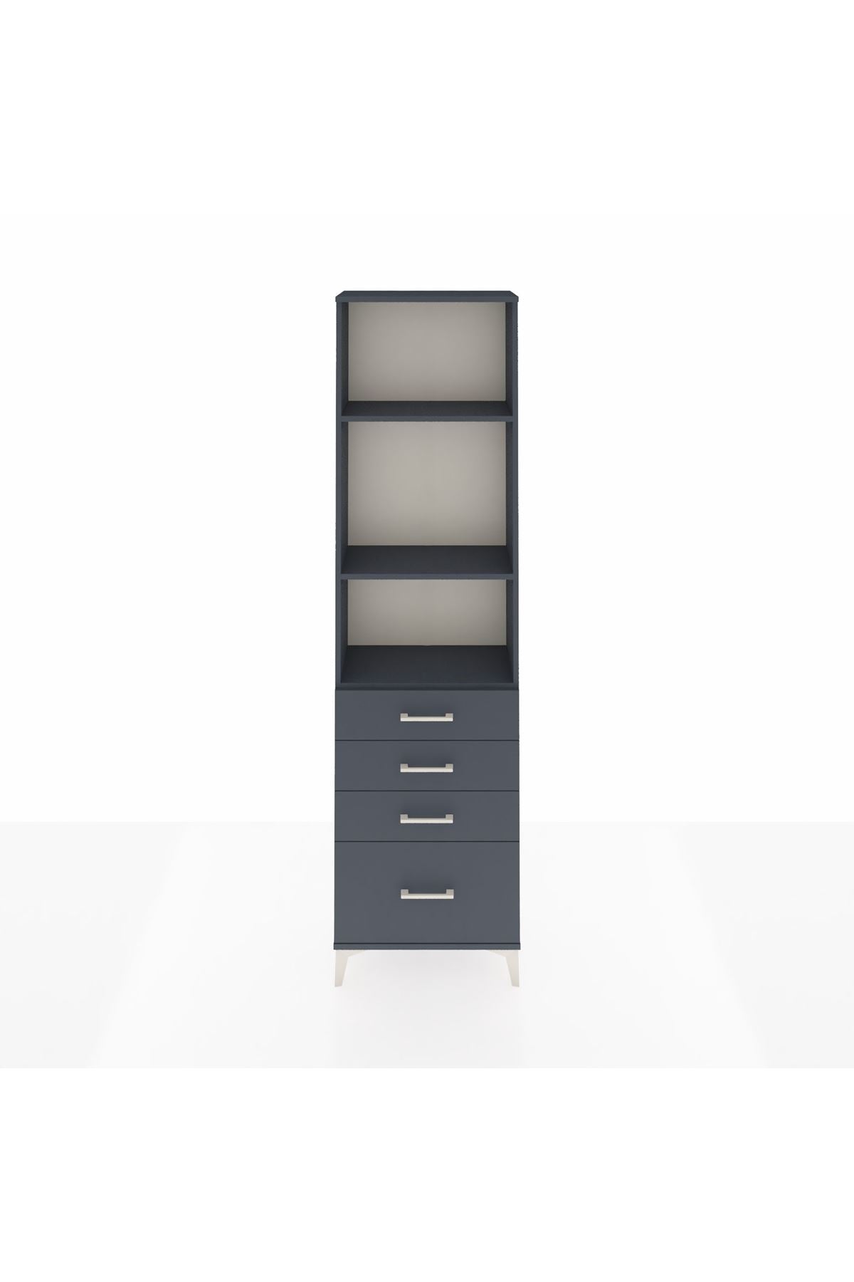Arges Dolap 3 Raflı 4 Çekmeceli 60x30x221 Antrasit-Antrasit
