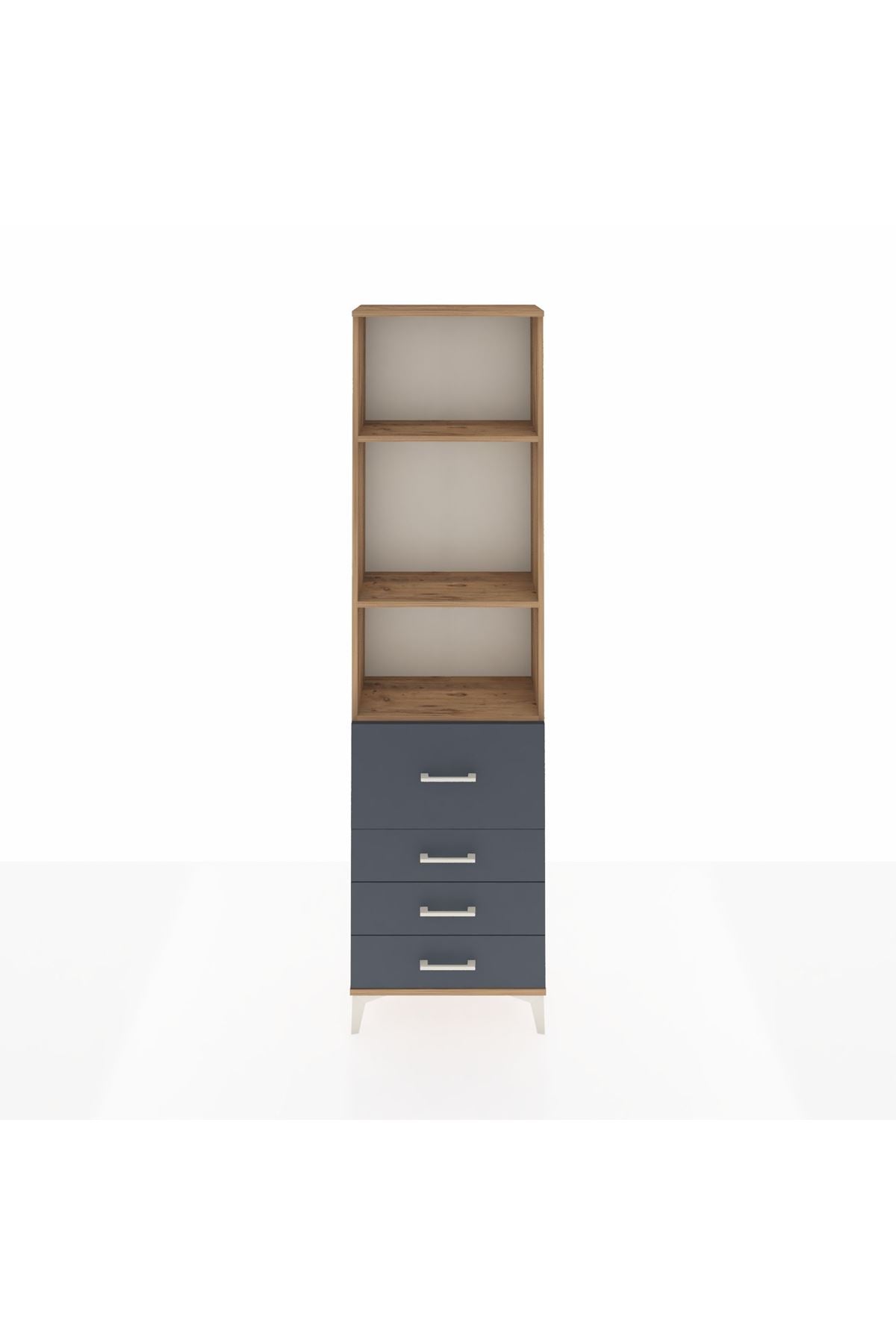 Arges Dolap 3 Raflı 4 Çekmeceli 60x30x221 Çam-Antrasit