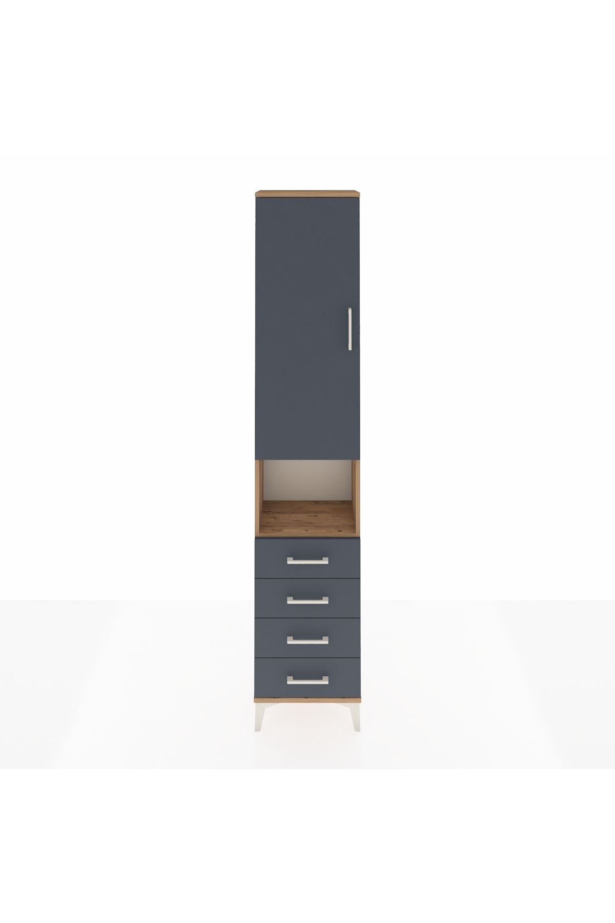 Arges Dolap 3 Raflı 4 Çekmeceli Tek Askılı 44x30x221 Çam-Antrasit