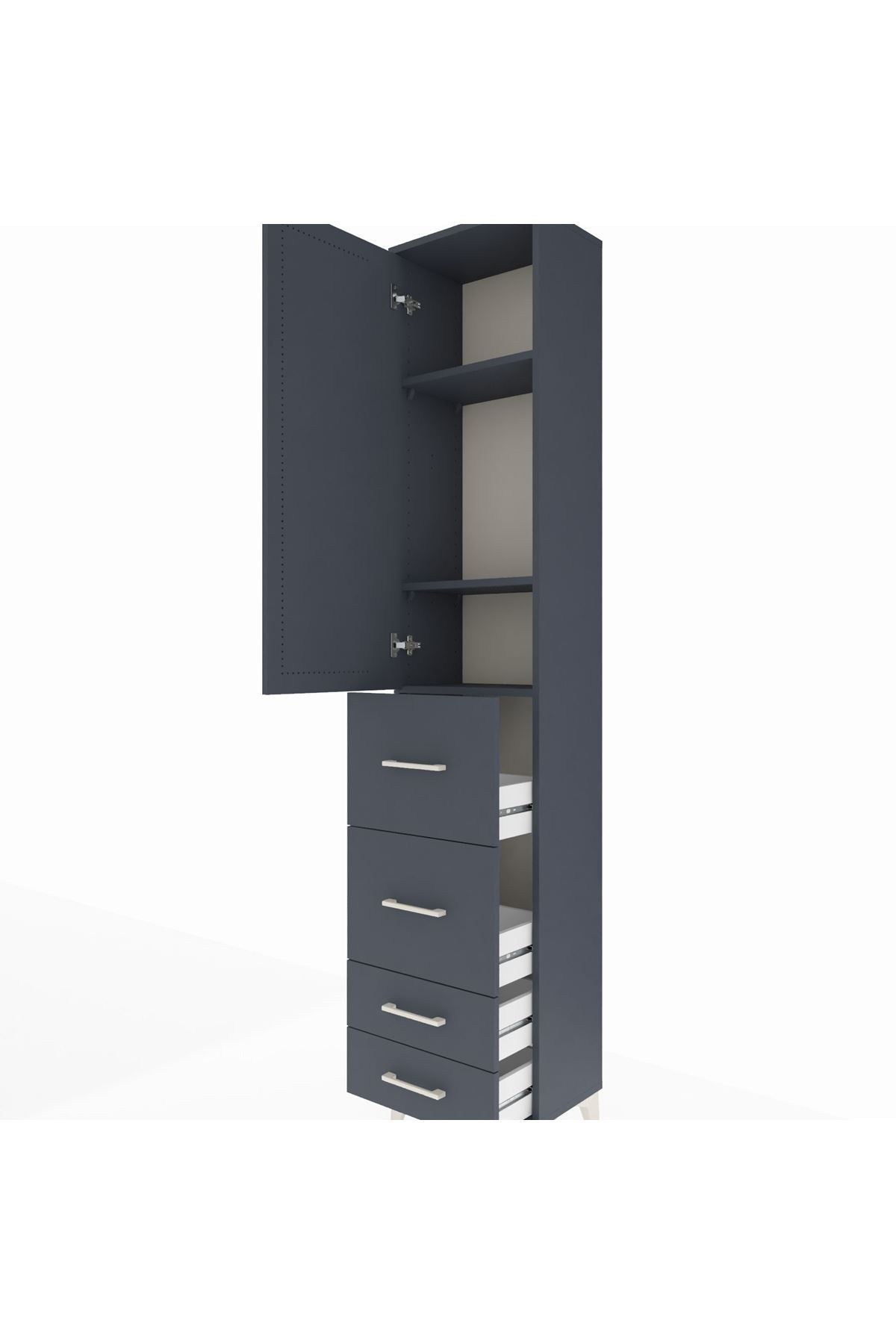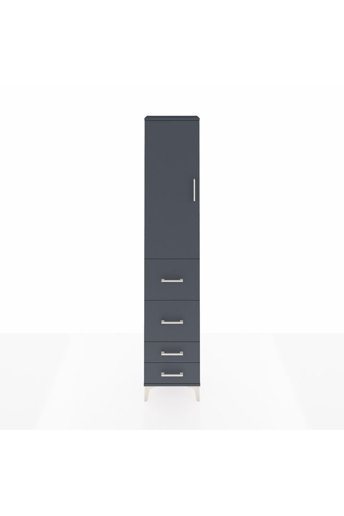 Arges Dolap 3 Raflı 4 Çekmeceli Tek Kapaklı 44x30x221 Antrasit-Antrasit