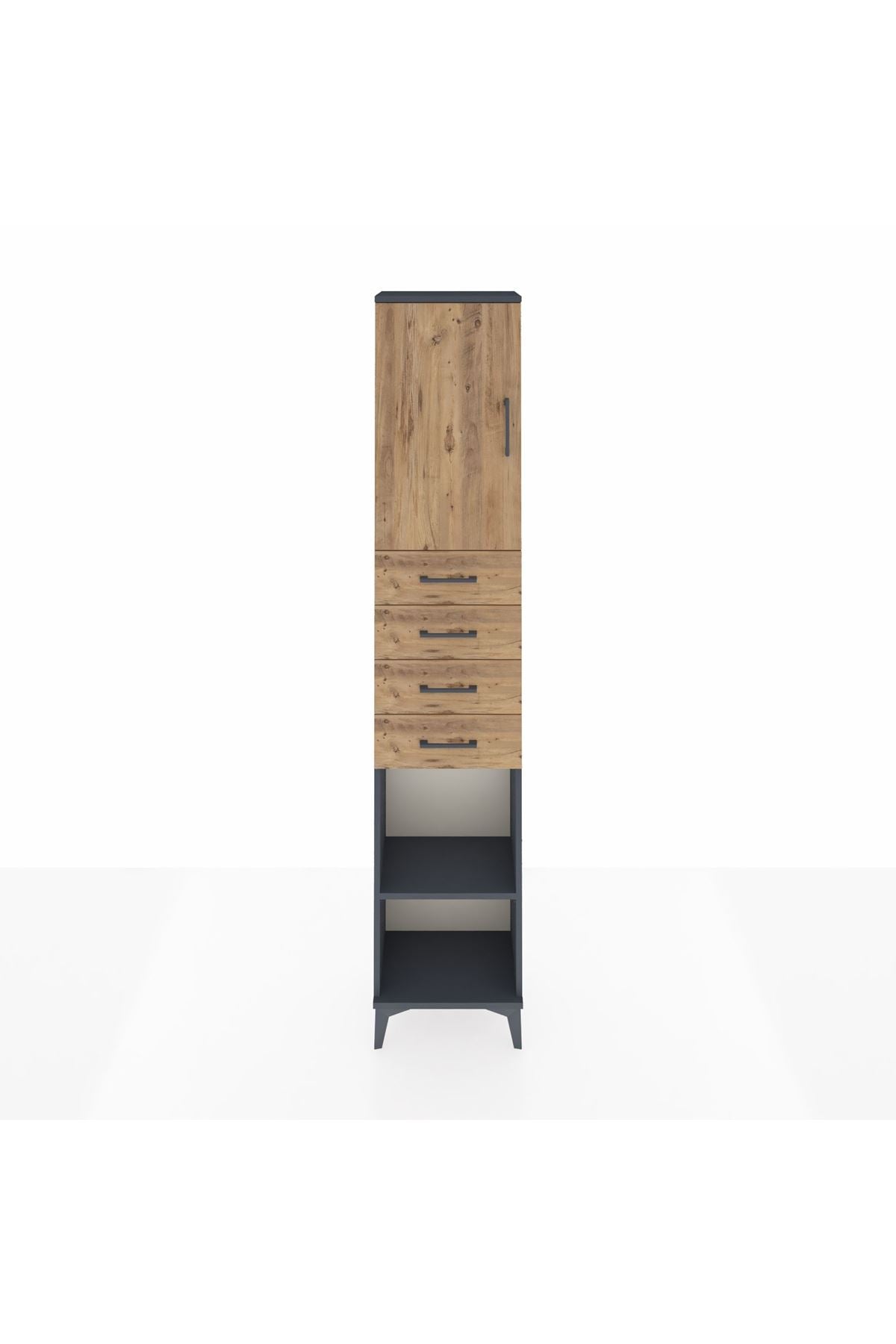 Arges Dolap 3 Raflı 4 Çekmeceli Tek Kapaklı 44x30x221 Antrasit-Çam