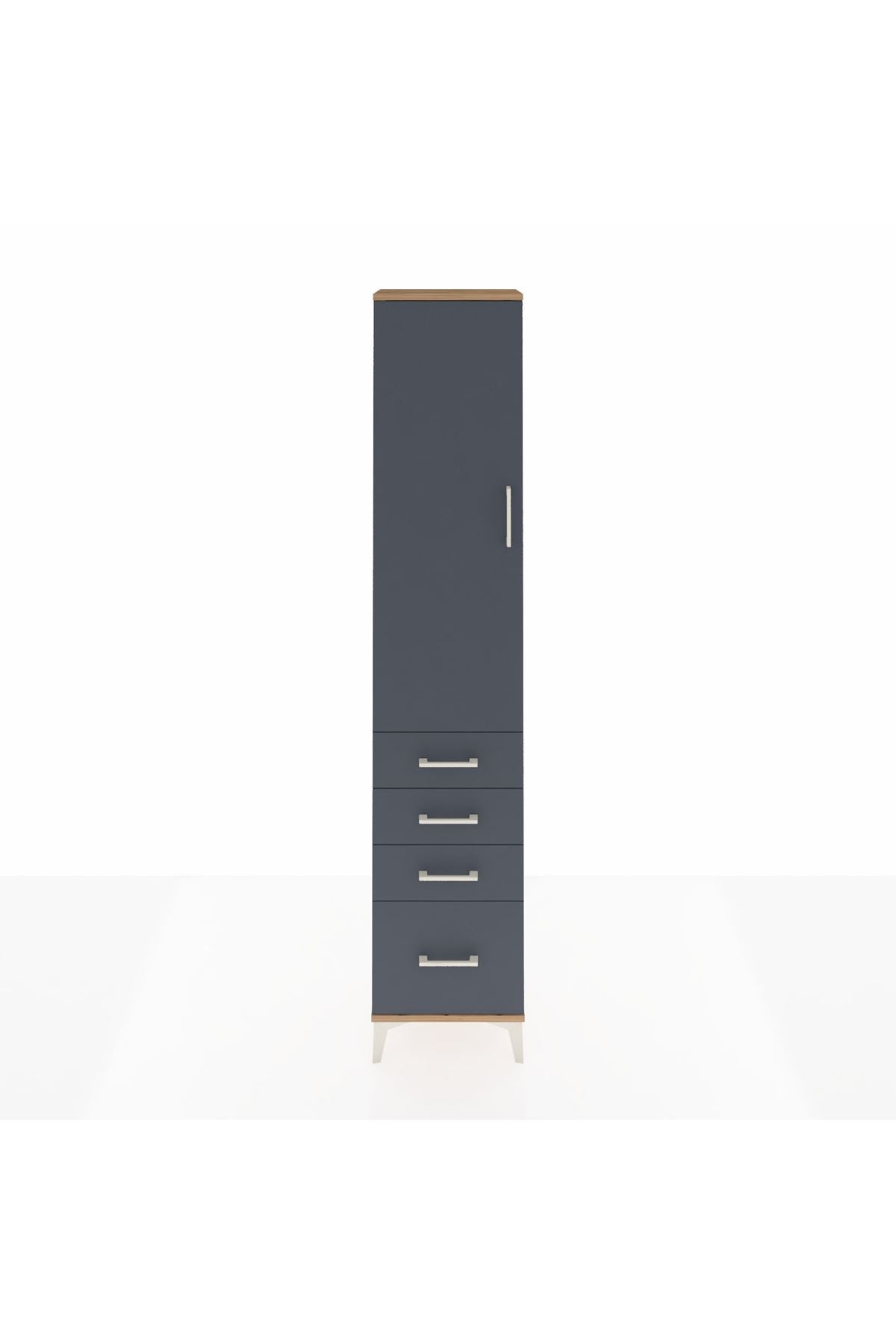 Arges Dolap 3 Raflı 4 Çekmeceli Tek Kapaklı 44x30x221 Çam-Antrasit
