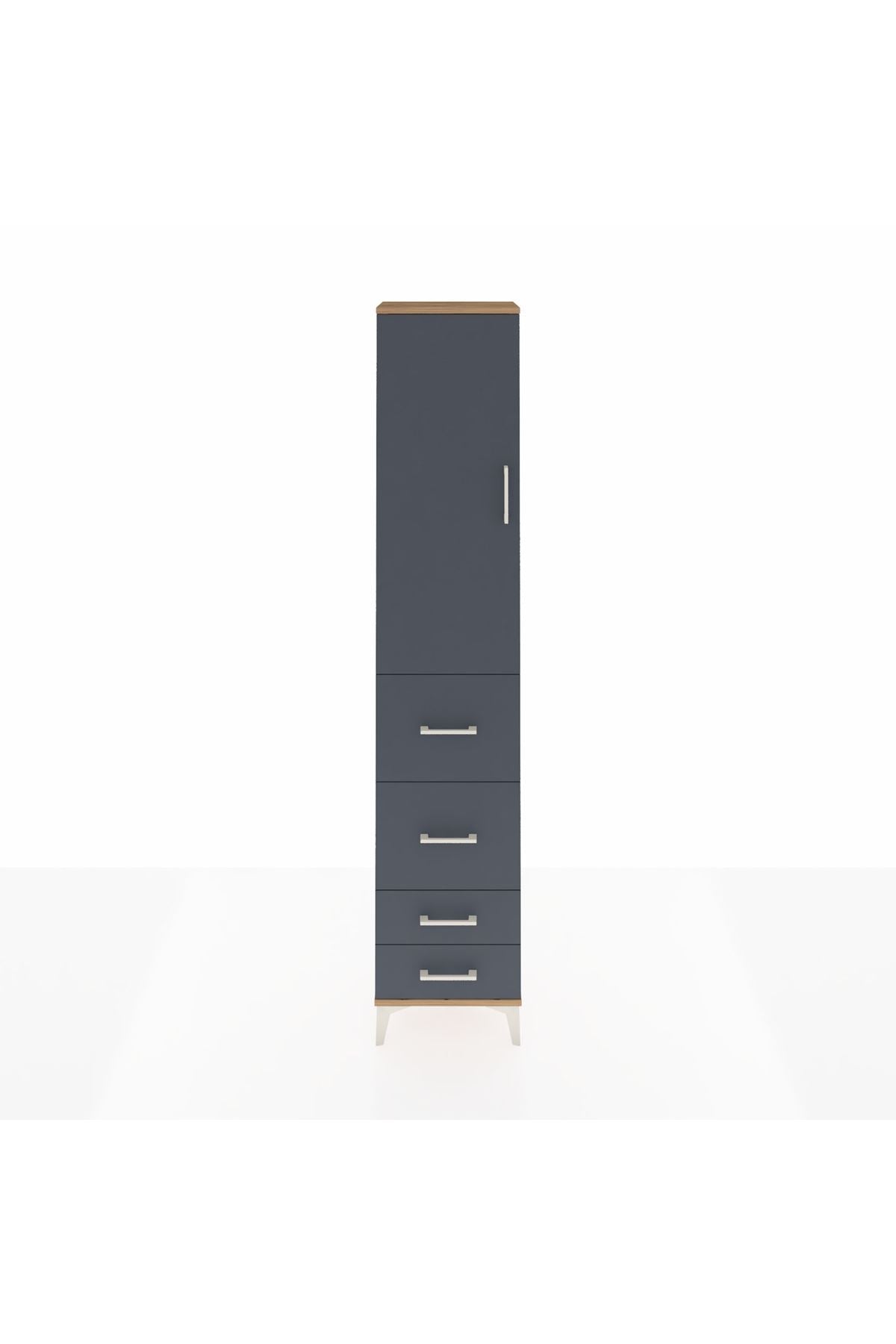 Arges Dolap 3 Raflı 4 Çekmeceli Tek Kapaklı 44x30x221 Çam-Antrasit