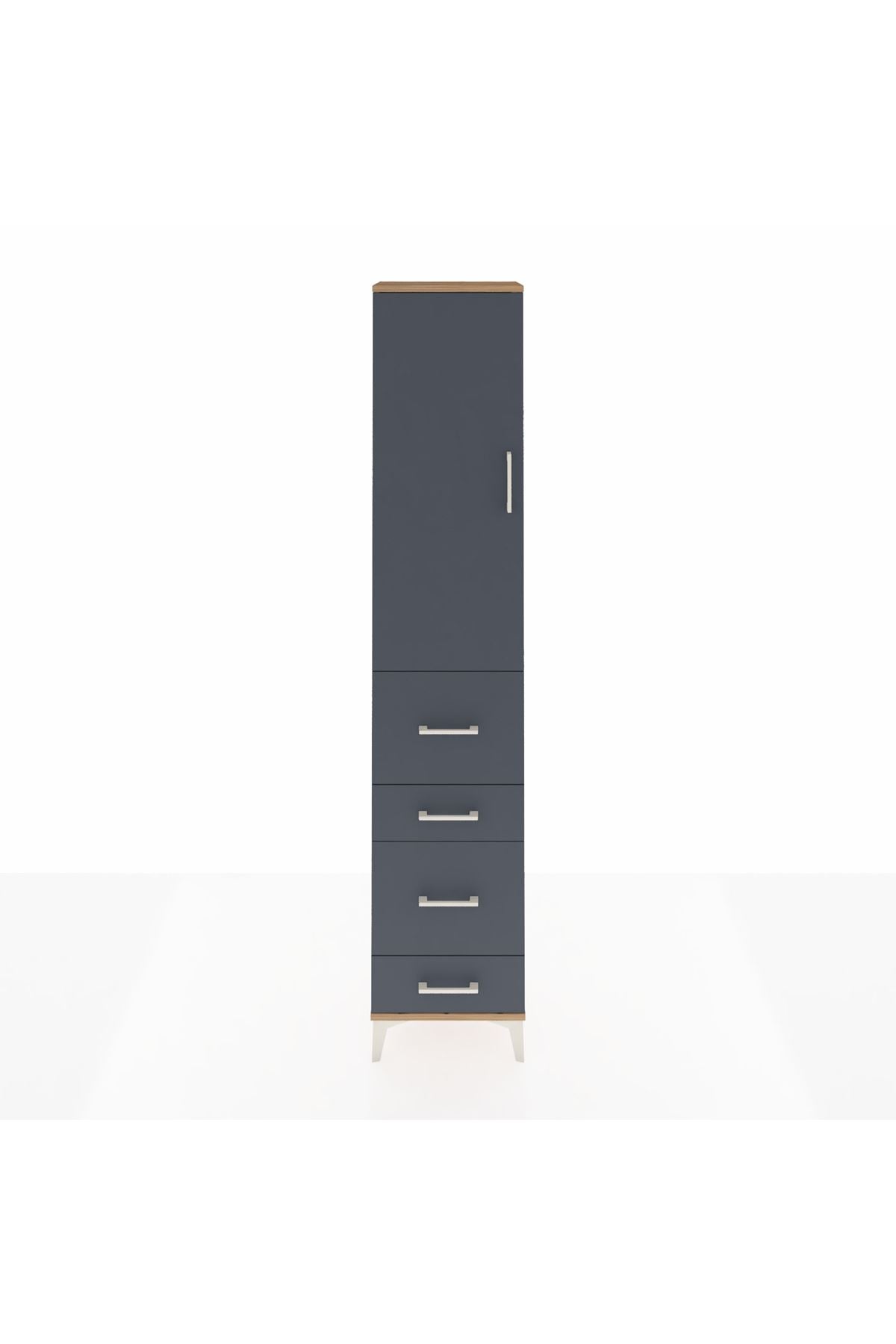 Arges Dolap 3 Raflı 4 Çekmeceli Tek Kapaklı 44x30x221 Çam-Antrasit
