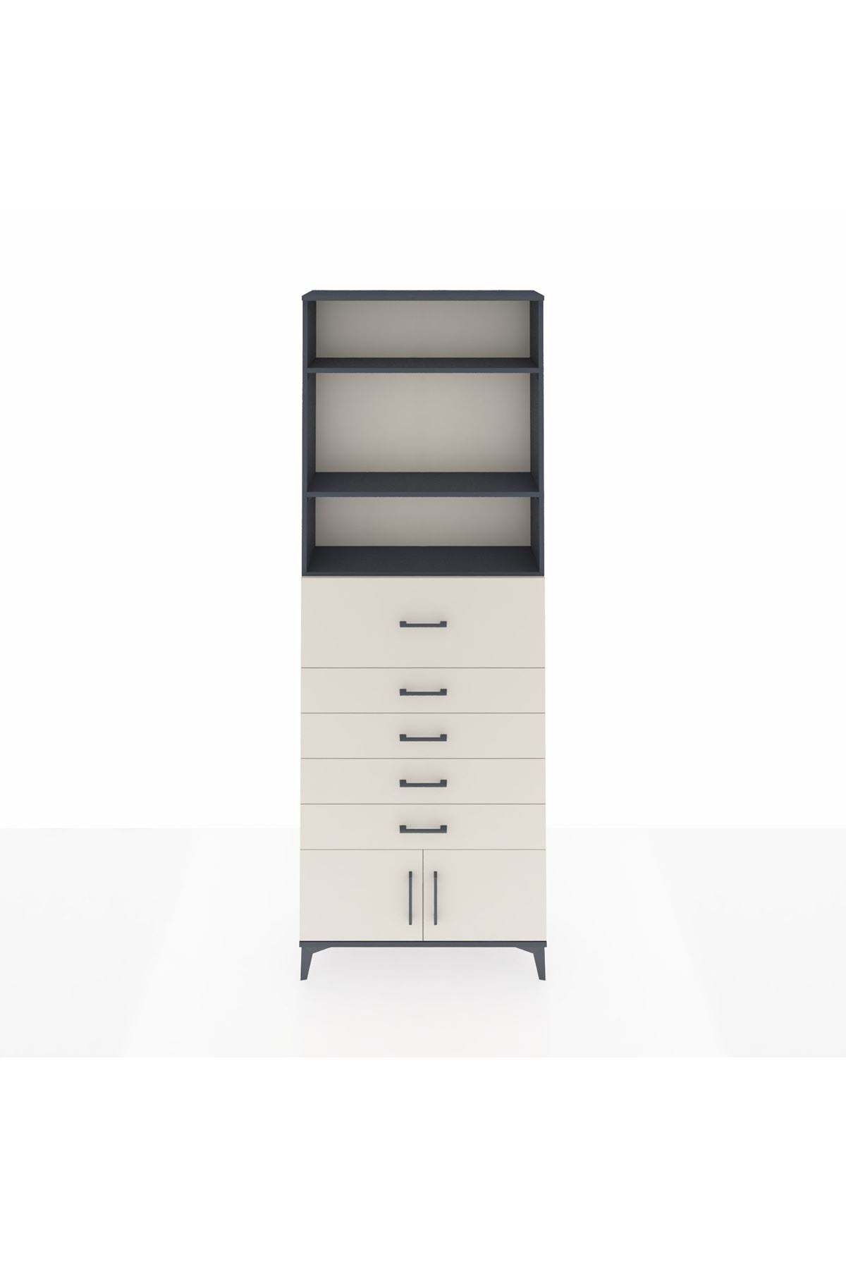 Arges Dolap 3 Raflı 5 Çekmeceli 2 Kapaklı 88x30x243 Antrasit-Aytaşı