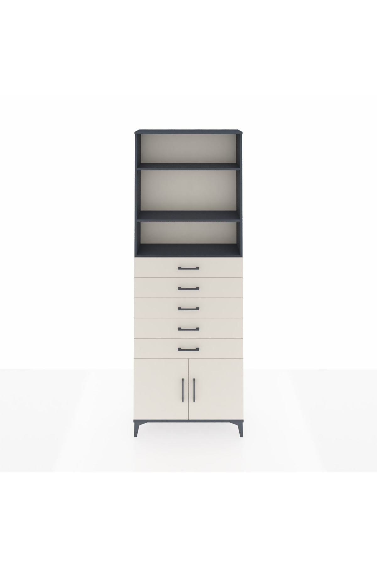 Arges Dolap 3 Raflı 5 Çekmeceli 2 Kapaklı 88x30x243 Antrasit-Aytaşı