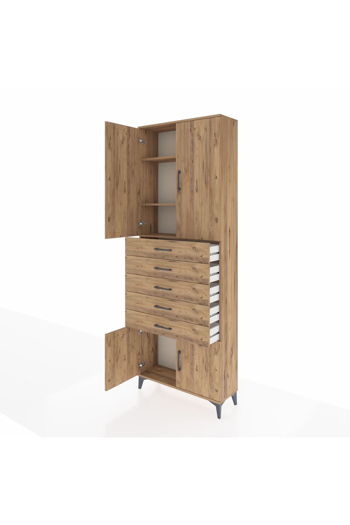 Arges Dolap 3 Raflı 5 Çekmeceli 4 Kapaklı 88x30x243 Çam-Çam