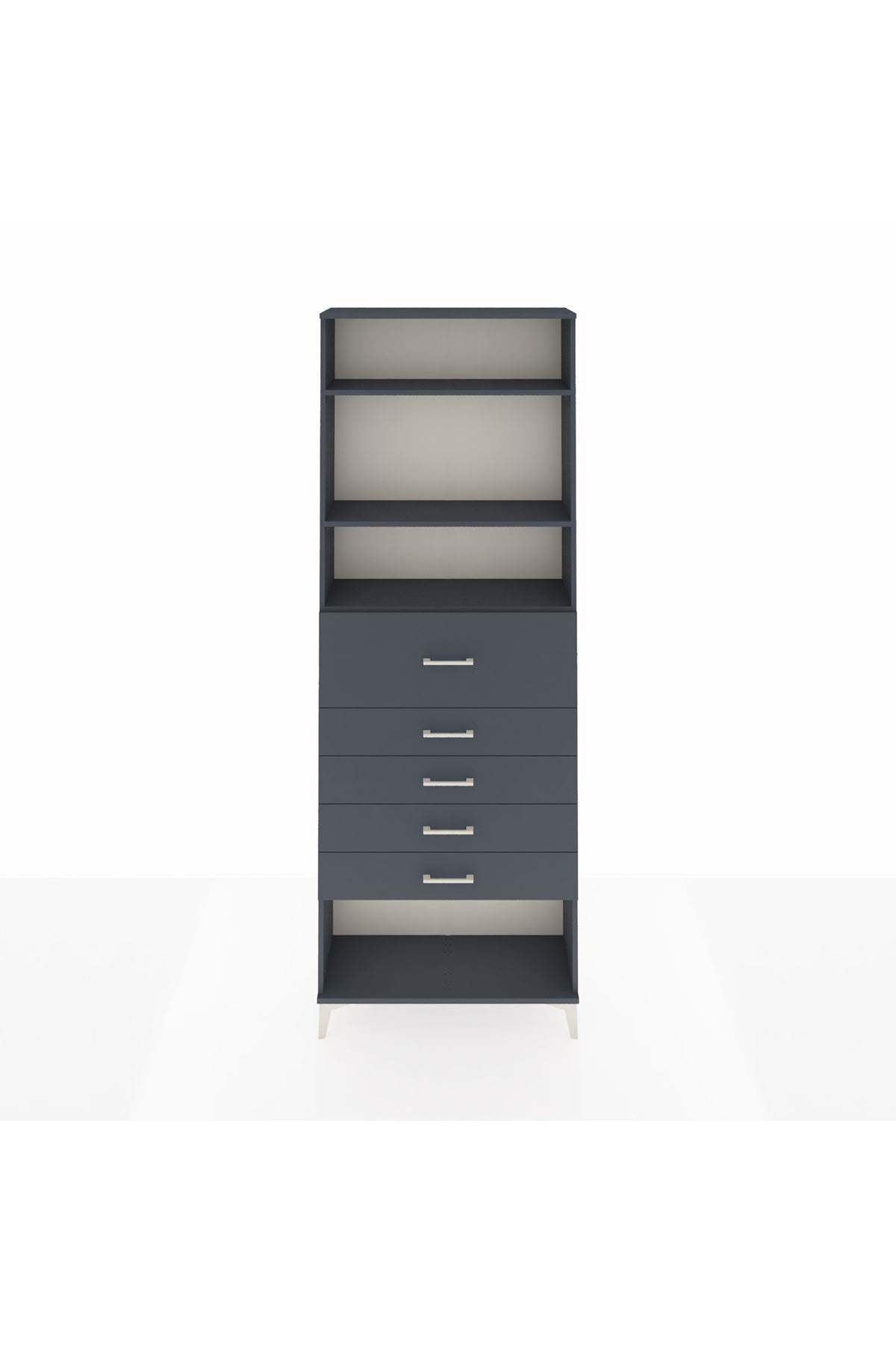 Arges Dolap 3 Raflı 5 Çekmeceli 88x30x243 Antrasit-Antrasit