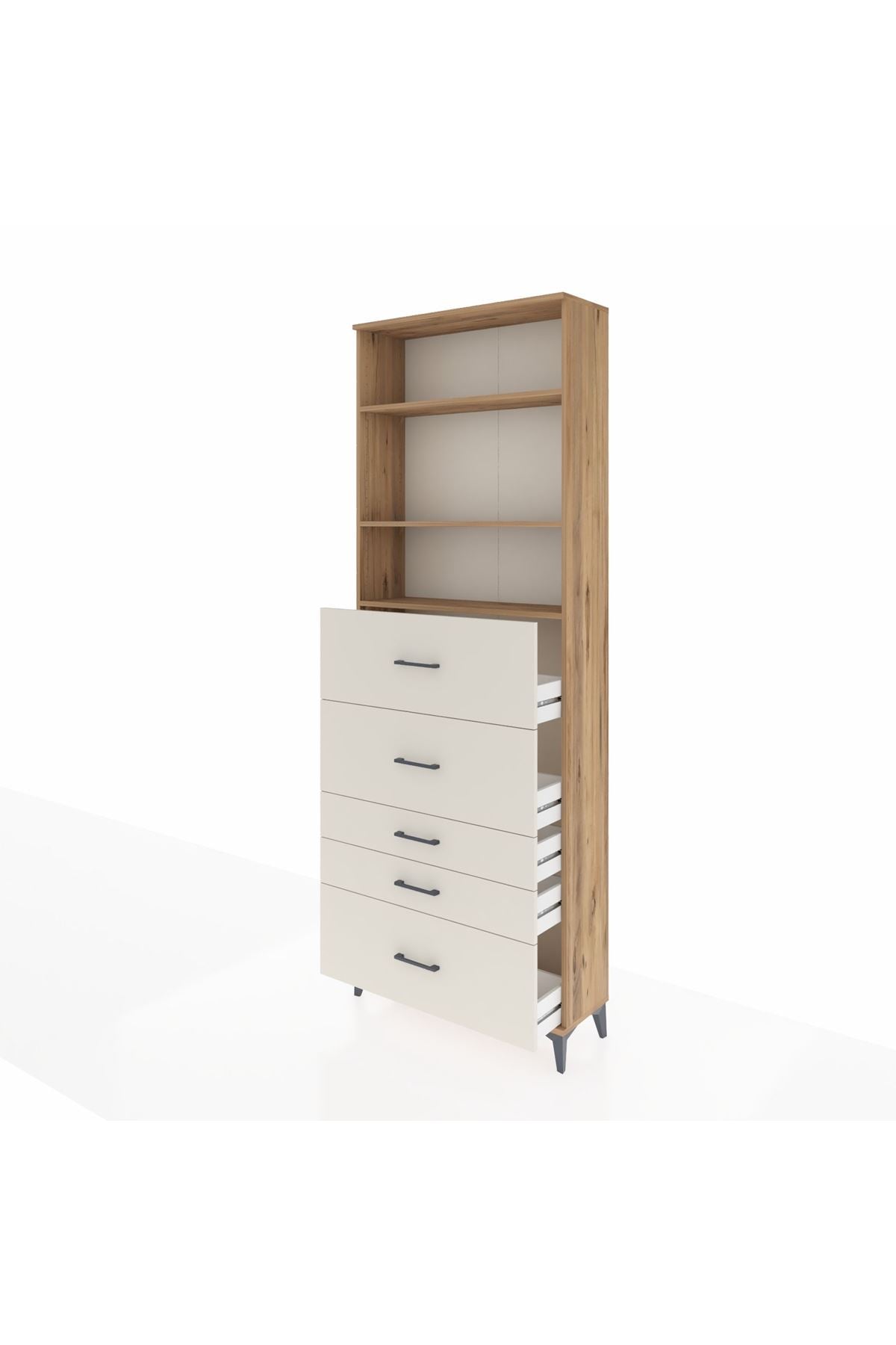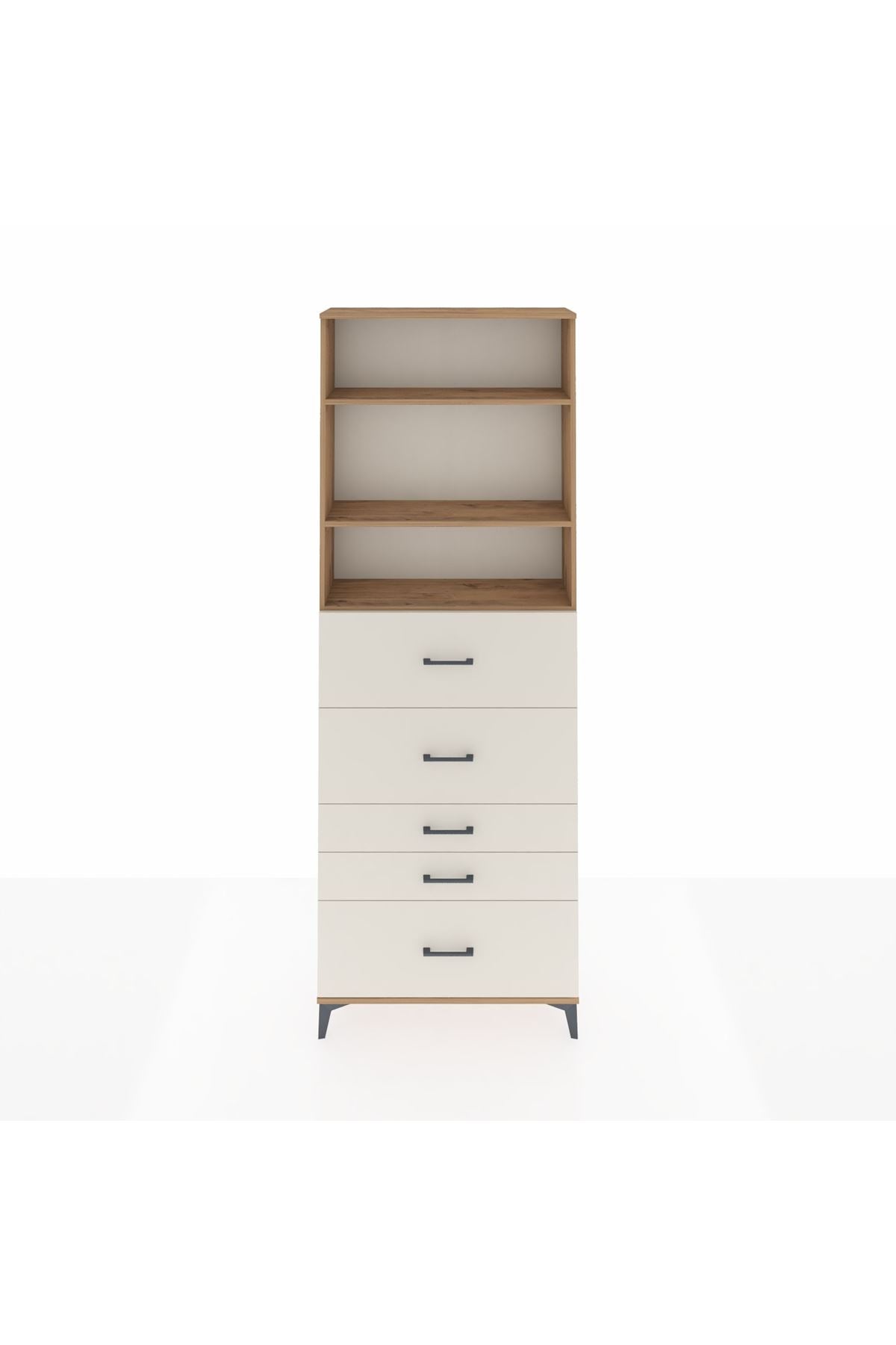 Arges Dolap 3 Raflı 5 Çekmeceli 88x30x243 Çam-Aytaşı