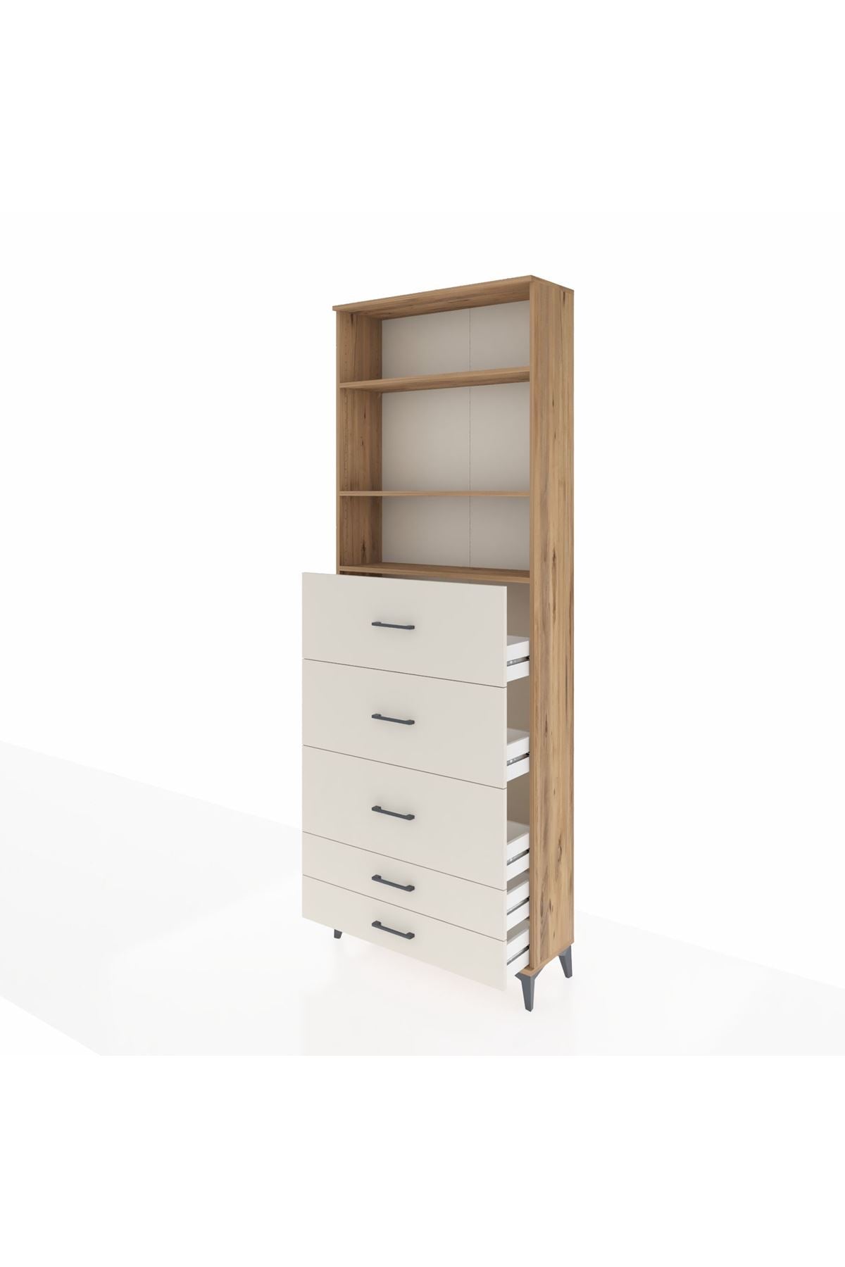 Arges Dolap 3 Raflı 5 Çekmeceli 88x30x243 Çam-Aytaşı