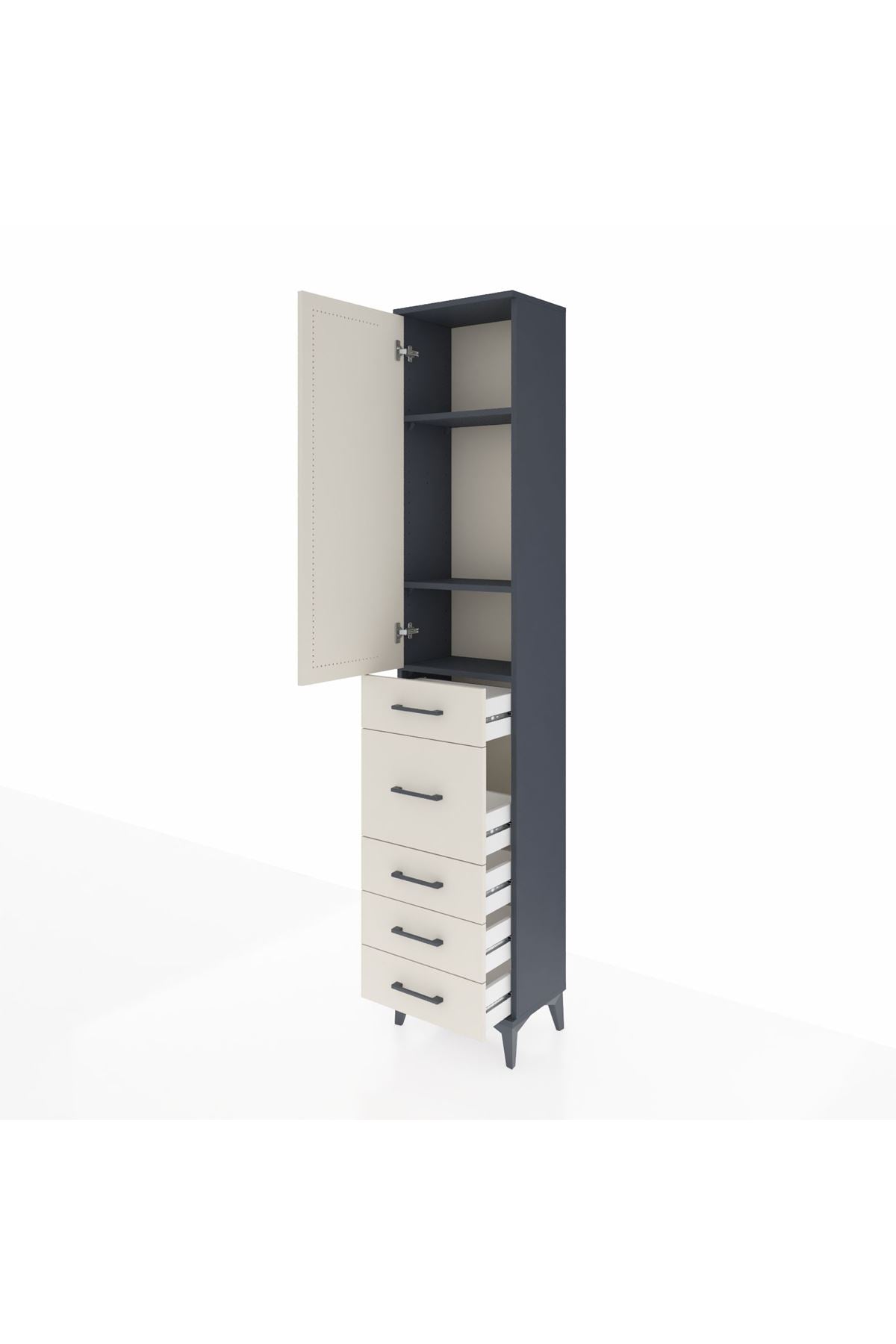 Arges Dolap 3 Raflı 5 Çekmeceli Tek Kapaklı 44x30x221 Antrasit-Aytaşı