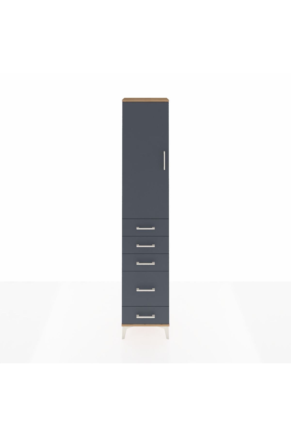 Arges Dolap 3 Raflı 5 Çekmeceli Tek Kapaklı 44x30x221 Çam-Antrasit