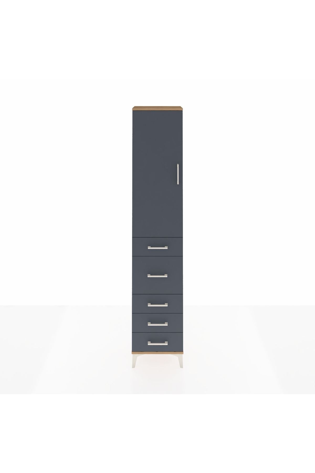 Arges Dolap 3 Raflı 5 Çekmeceli Tek Kapaklı 44x30x221 Çam-Antrasit