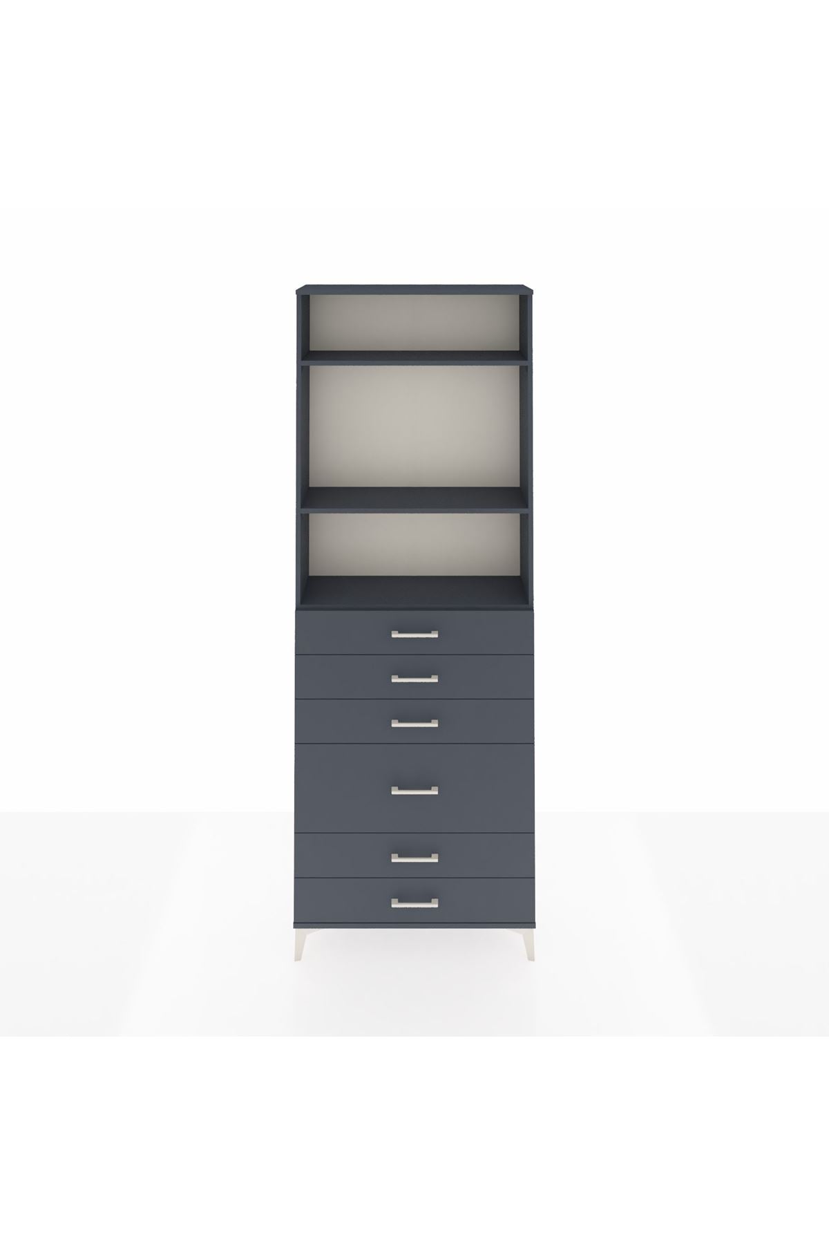 Arges Dolap 3 Raflı 6 Çekmeceli 2 Kapaklı 88x30x243 Antrasit-Antrasit